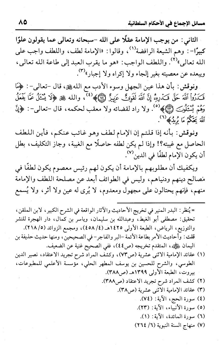 (¬1) عقائد الإمامية الاثنى عشرية (ص 73)، وكشف المراد شرح تجريد الاعتقاد، نصير الدين الطوسي، والشرح للحسين بن يوسف المطهر الحلي، مؤسسة الأعلمي للمطبوعات، بيروت، الطبعة الأولى 1399 هـ (ص 388).