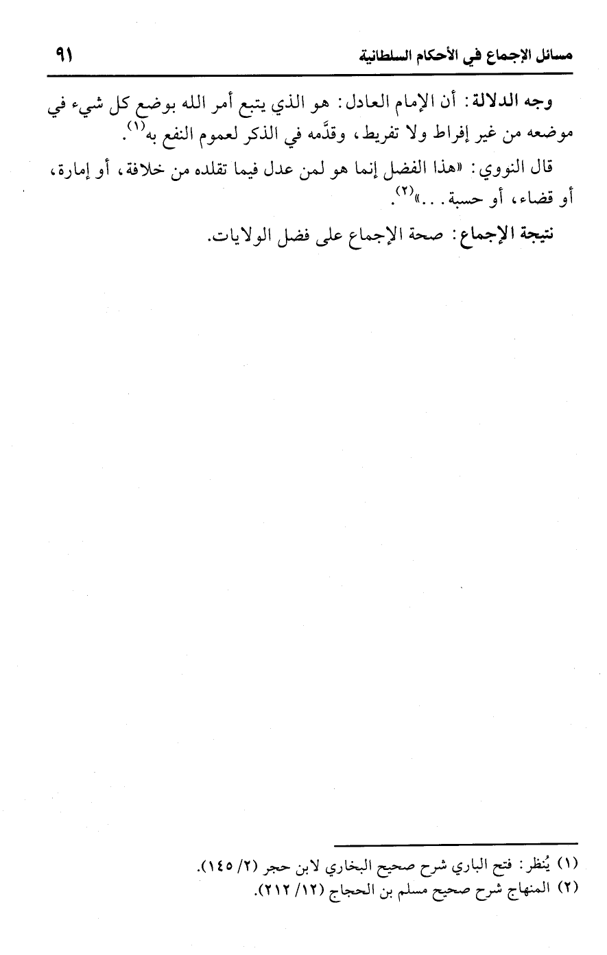 قال النووي: "هذا الفضل إنما هو لمن عدل فيما تقلده من خلافة، أو إمارة، أو قضاء، أو حسبة. . . " (¬2).Rصحة الإجماع على فضل الولايات.