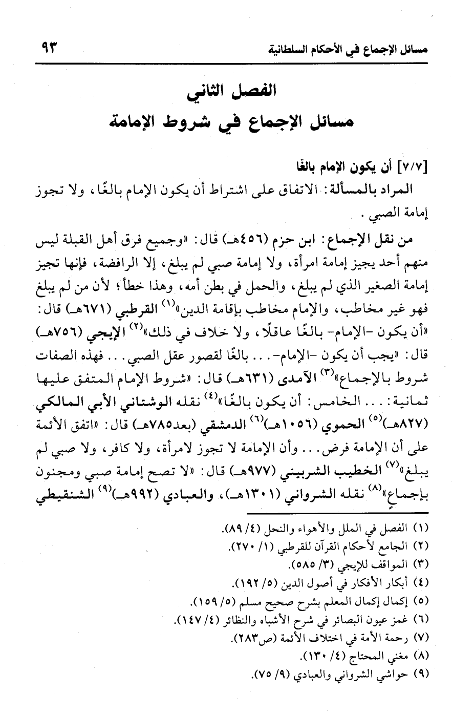 الفصل الثاني مسائل الإجماع في شروط الإمامة