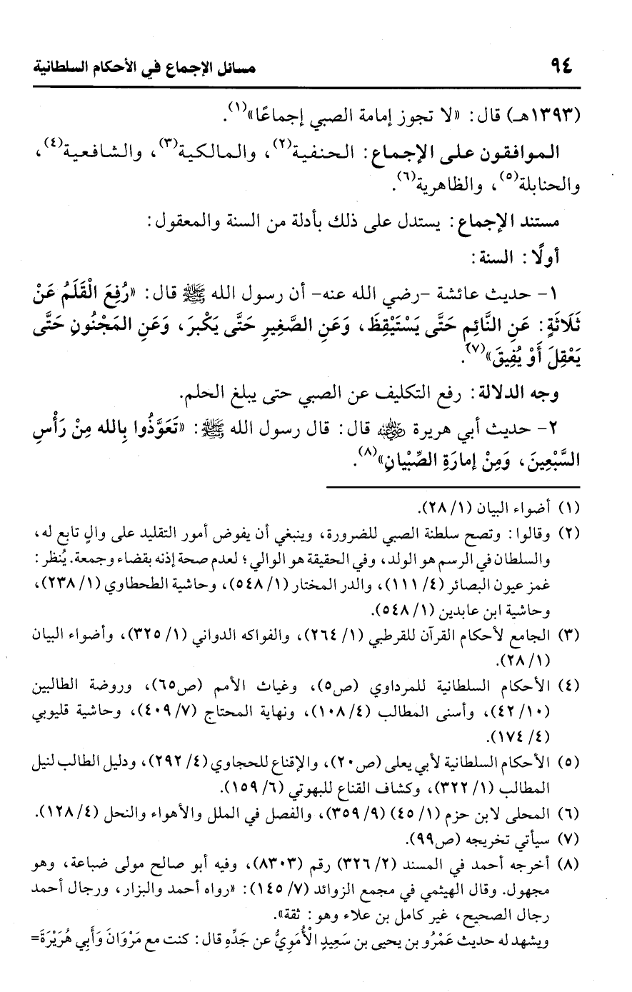 (¬5) الأحكام السلطانية لأبي يعلى (ص 20)، والإقناع للحجاوي (4/ 292)، ودليل الطالب لنيل المطالب (1/ 322)، وكشاف القناع للبهوتي (6/ 159).