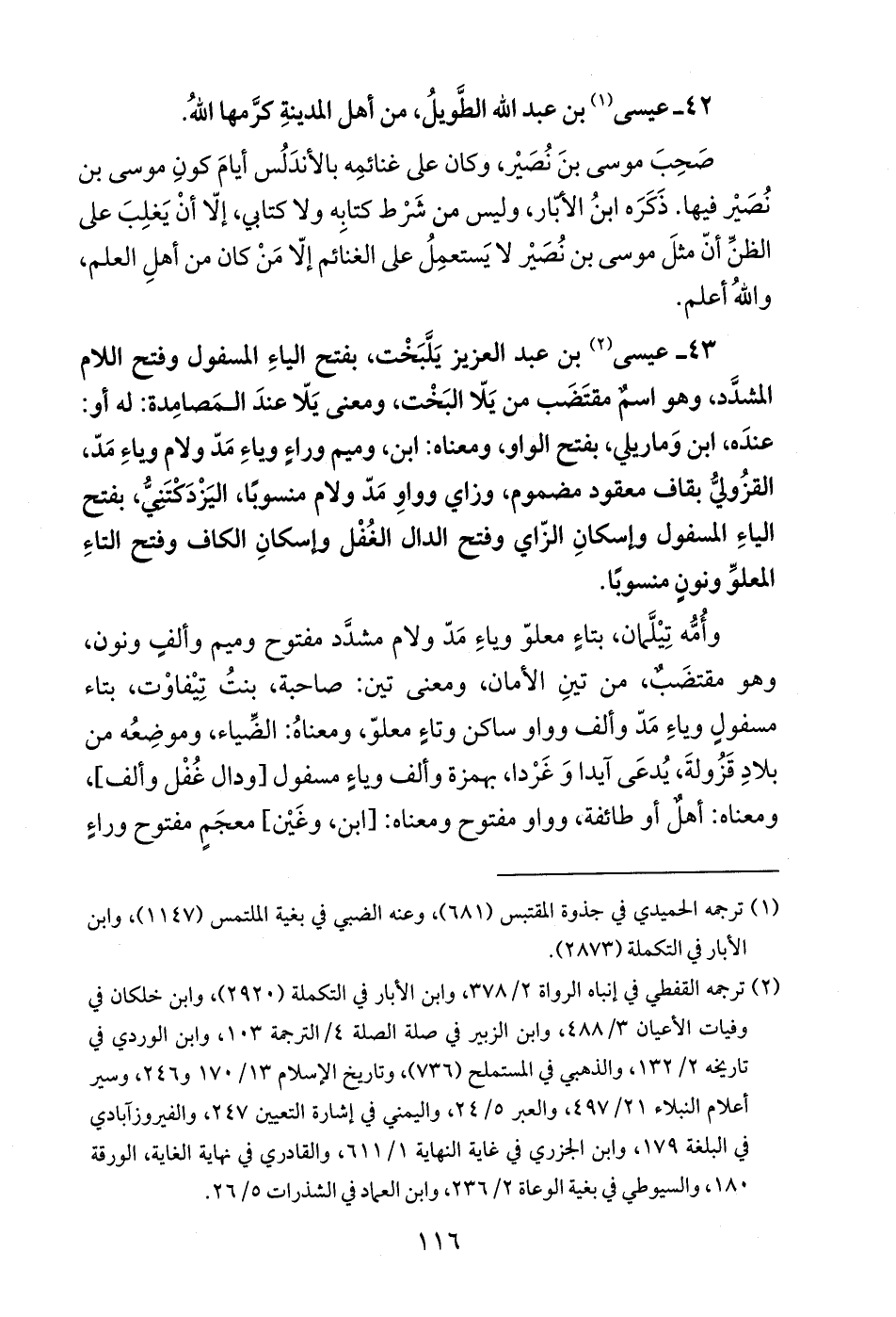 43 - عيسى (¬2) بن عبد العزيز يَلَّبَخْت، بفتح الياءِ المسفول وفتح اللام المشدَّد، وهو اسمٌ مقتَضَب من يَلّا البَخْت، ومعنى يَلّا عندَ المَصامِدة: له أو: عندَه، ابن وَماريلي، بفتح الواو، ومعناه: ابن، وميم وراءٍ وياءِ مَدّ ولام وياءِ مَدّ، القزُوليُّ بقاف معقود مضموم، وزاي وواوِ مَدّ ولام منسوبًا، اليَزْدَكْتَنِيُّ، بفتح الياءِ المسفول وإسكانِ الزّاي وفتح الدال الغُفْل وإسكانِ الكاف وفتح التاءِ المعلوِّ ونونٍ منسوبًا.