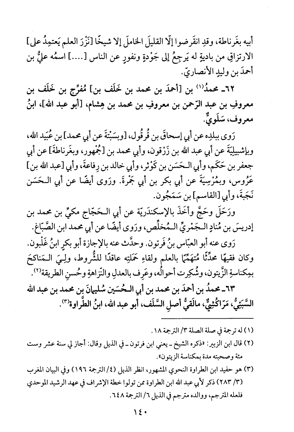 63 - محمدُ بن أحمدَ بن محمد بن أبي الحُسَين سُليمانَ بن محمد بن عبد الله السَّبَئِيُّ، مَرّاكُشِيٌّ، مالَقيُّ أصلِ السَّلَف، أبو عبد الله، ابنُ الطَّراوة (¬3).