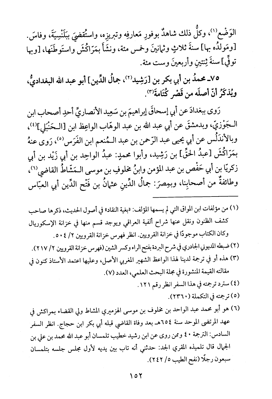 75 - محمدُ بن أبي بكر بن [رَشِيد (¬2)، جمالُ الدِّين] أبو عبد الله البغداديُّ، ويُذكَرُ أنّ أصلَه من قَصْر كُتَامةَ (¬3).