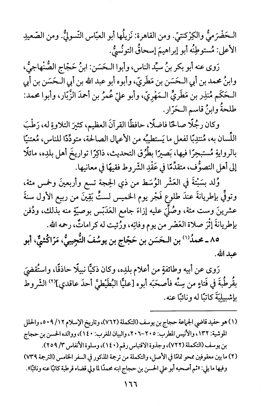 85 - محمدُ (¬1) بن الحَسَن بن حَجّاج بن يوسُفَ التُّجيبيُّ، مَرّاكُشيٌّ، أبو عبد الله.