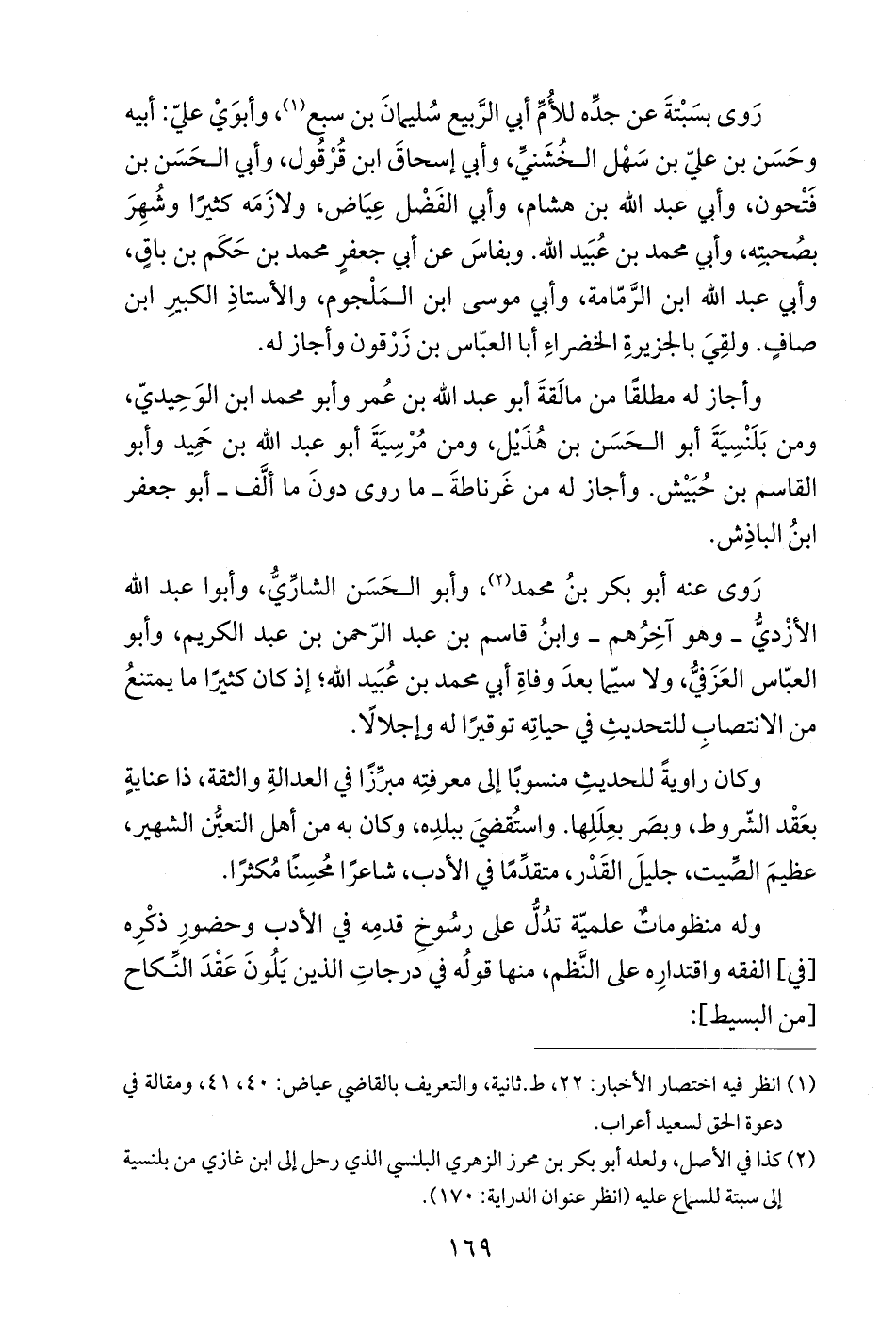(¬1) انظر فيه اختصار الأخبار: 22، ط. ثانية، والتعريف بالقاضي عياض: 40، 41، ومقالة في دعوة الحق لسعيد أعراب.
