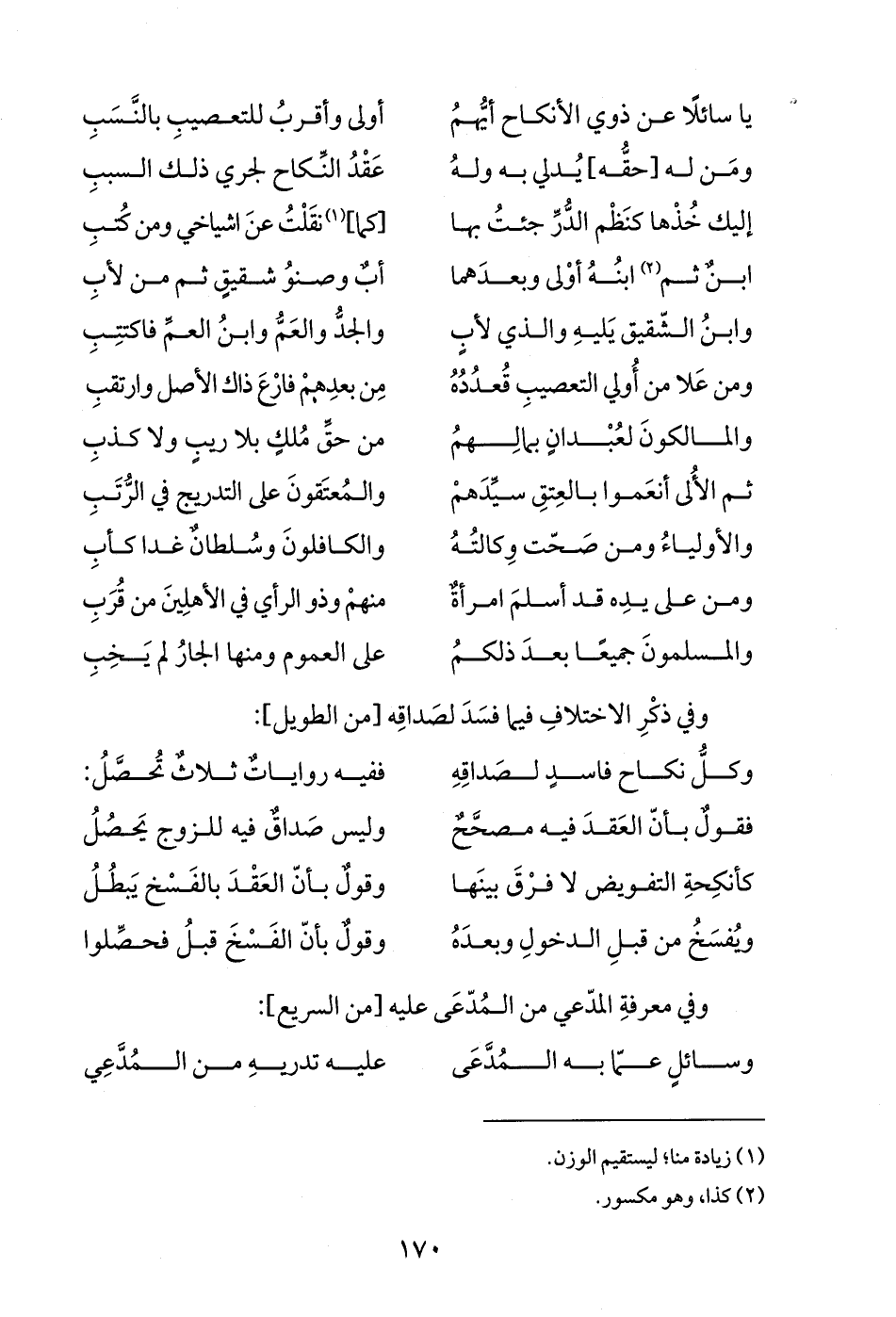 يا سائلًا عن ذوي الأنكاح أيُّهمُ ... أولى وأقربُ للتعصيبِ بالنَّسَبِ