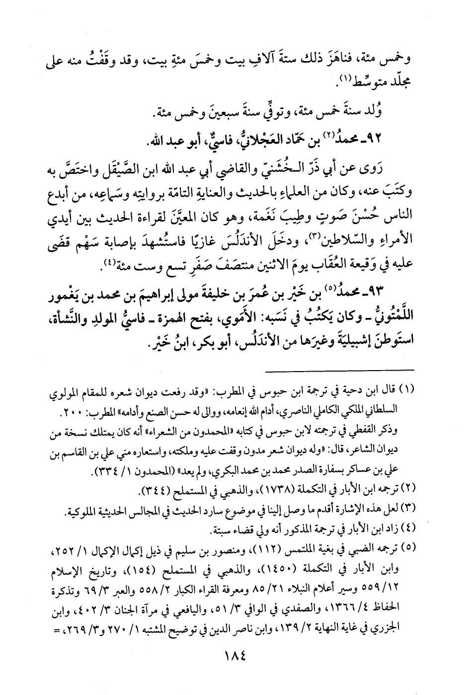 93 - محمدُ (¬5) بن خَيْر بن عُمرَ بن خليفةَ مولى إبراهيمَ بن محمد بن يَغْمور اللَّمْتُونيُّ -وكان يَكتُبُ في نَسَبه: الأمَوي، بفتح الهمزة- فاسيُّ المولدِ والنَّشأة، استَوطنَ إشبيليَةَ وغيرَها من الأندَلُس، أبو بكر، ابنُ خَيْر.