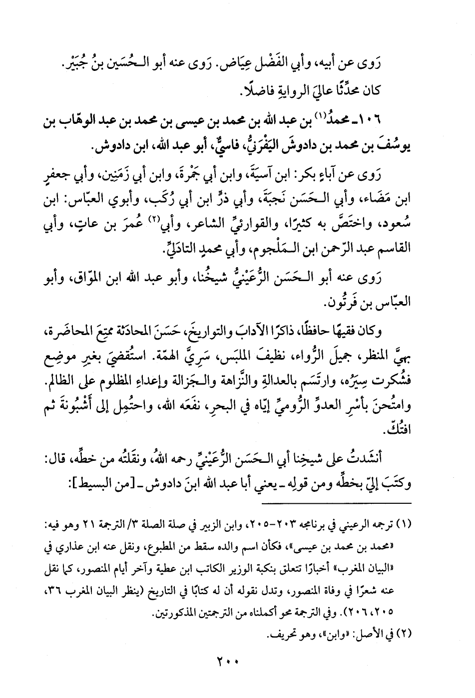 106 - محمدُ (¬1) بن عبد الله بن محمد بن عيسى بن محمد بن عبد الوهّاب بن يوسُفَ بن محمد بن دادوشَ اليَفْرَنيُّ، فاسيٌّ، أبو عبد الله، ابن دادوش.