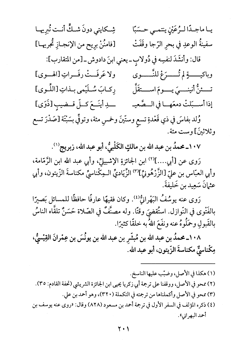 108 - محمدُ بن عبد الله بن مُبشّرِ بن عبد الله بن يونُسَ بن عِمْرانَ القِيْسيُّ، مِكْناسيٌّ مكناسةَ الزّيتون، أبو عبد الله.