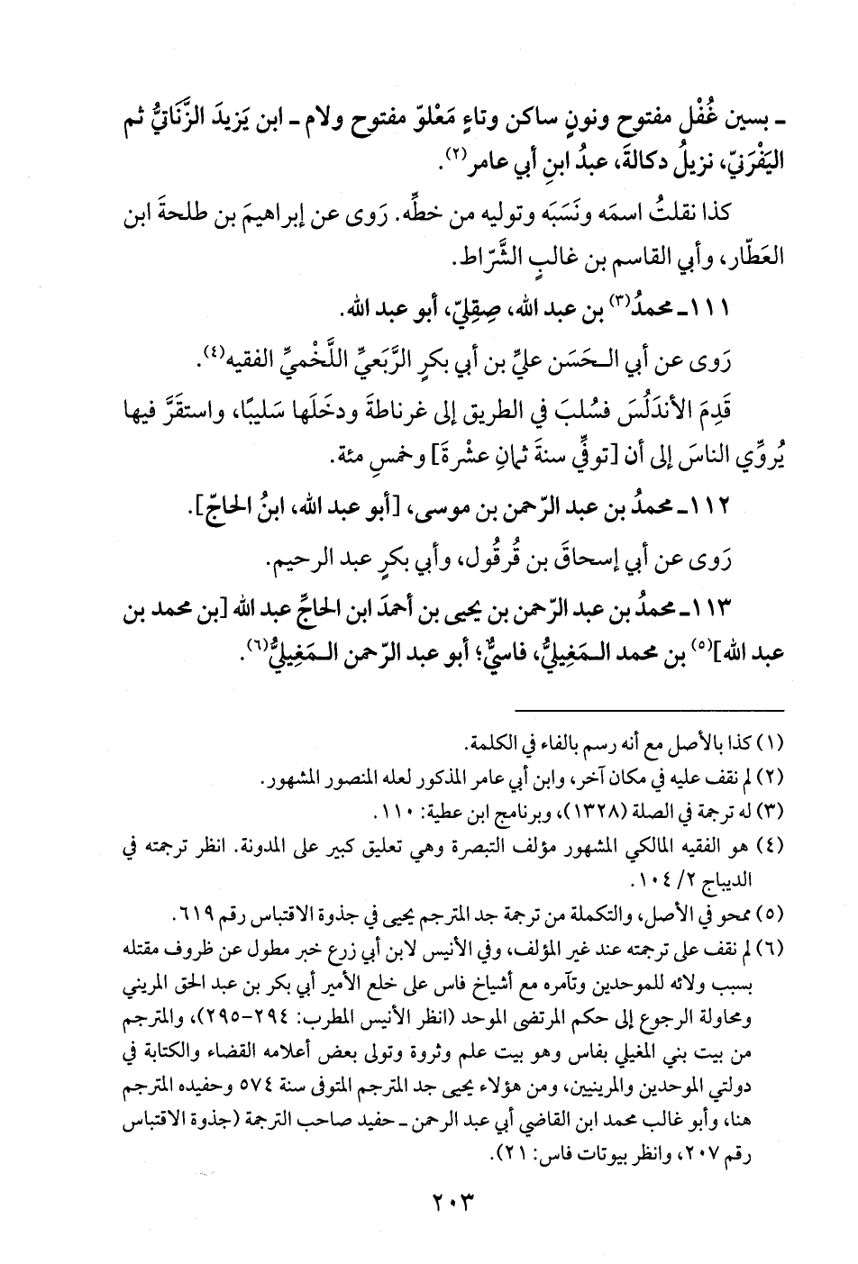 113 - محمدُ بن عبد الرّحمن بن يحيى بن أحمدَ ابن الحاجِّ عبد الله [بن محمد بن عبد الله] (¬5) بن محمد المَغِيليُّ، فاسيٌّ؛ أبو عبد الرّحمن المَغِيليُّ (¬6).