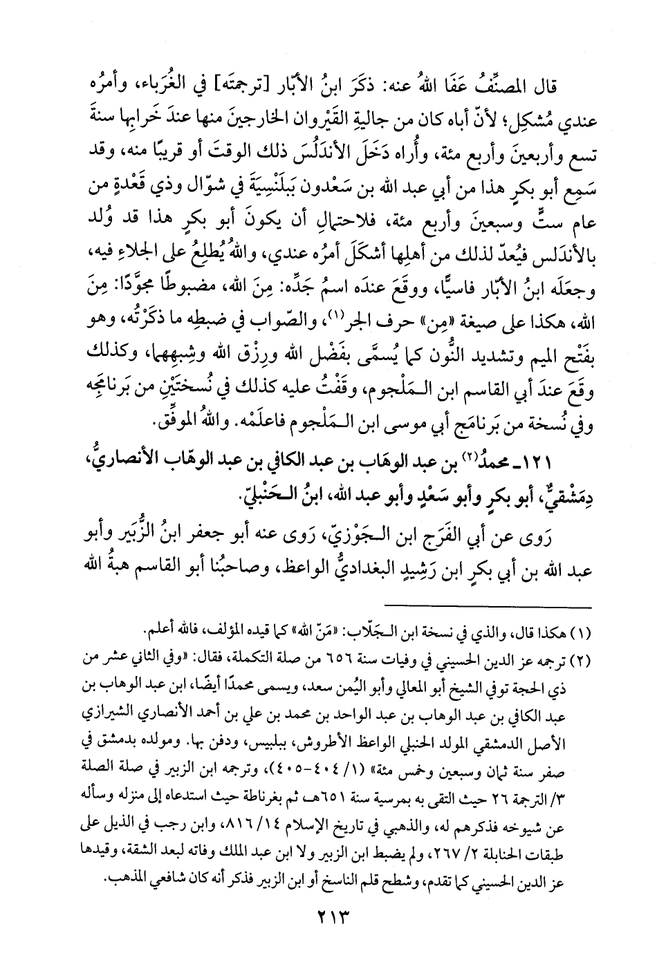 121 - محمدُ (¬2) بن عبد الوهَاب بن عبد الكافي بن عبد الوهّاب الأنصاريُّ، دِمَشْقيٌّ، أبو بكرٍ وأبو سَعْدٍ وأبو عبد الله، ابنُ الحَنْبليّ.