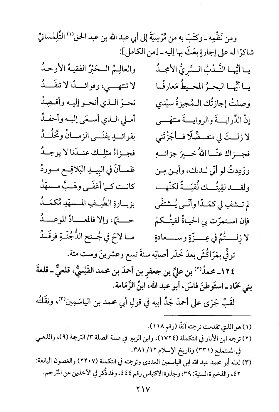 (¬3) لعله أبو محمد عبد الله ابن الياسمين العددي وترجمته في التكملة (2207) والغصون اليانعة: 42، والذخيرة السنية: 39، وجذوة الاقتباس رقم 444، وقد ذُكر في الآخذين عن المترجم.