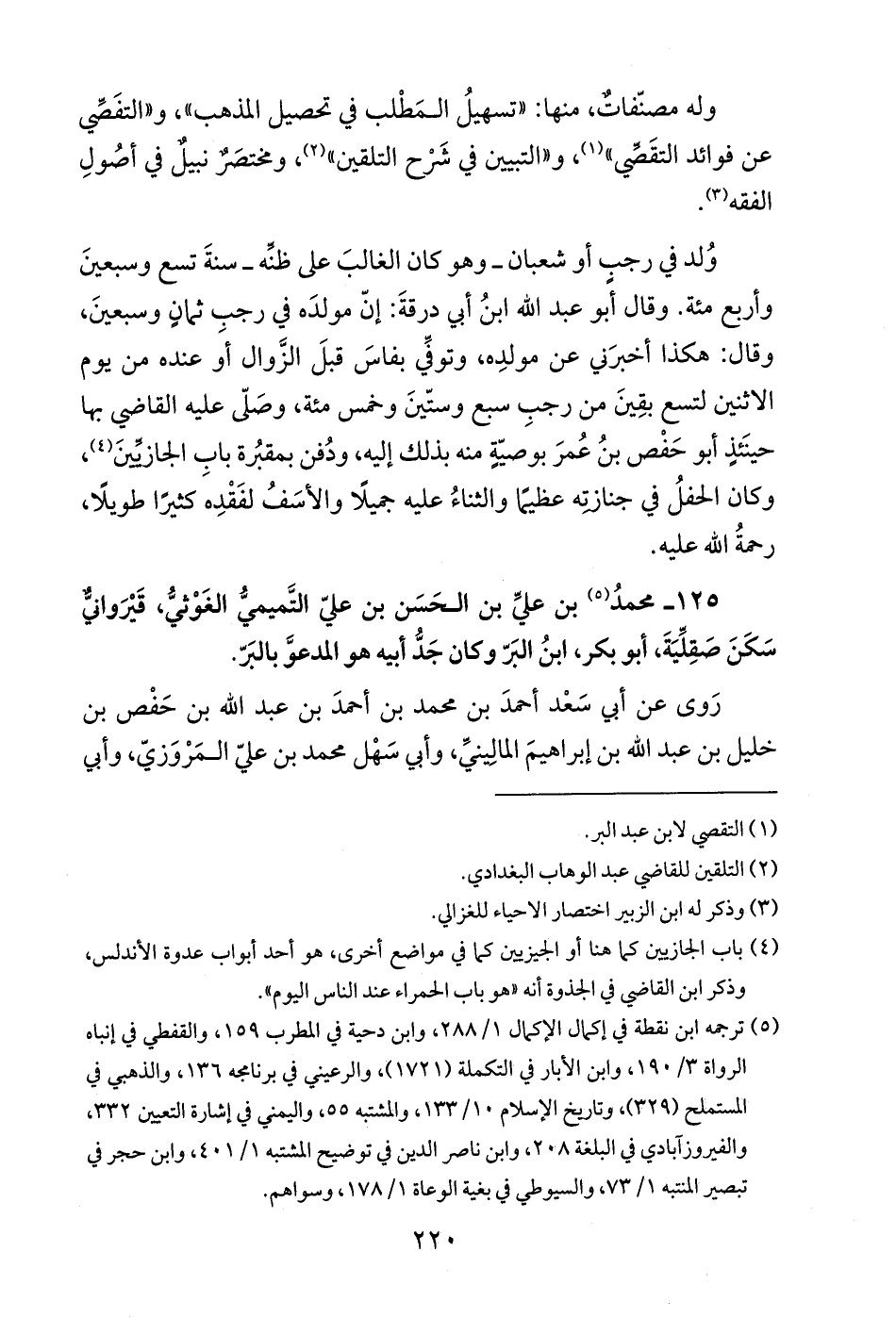 125 - محمدُ (¬5) بن عليِّ بن الحَسَن بن عليّ التَميميُّ الغَوْثيُّ، قَيْرَوانيٌّ سَكَنَ صَقِلِّيَةَ، أبو بكر، ابنُ البَرّ وكان جَدُّ أَبيه هو المدعوَّ بالبَرّ.