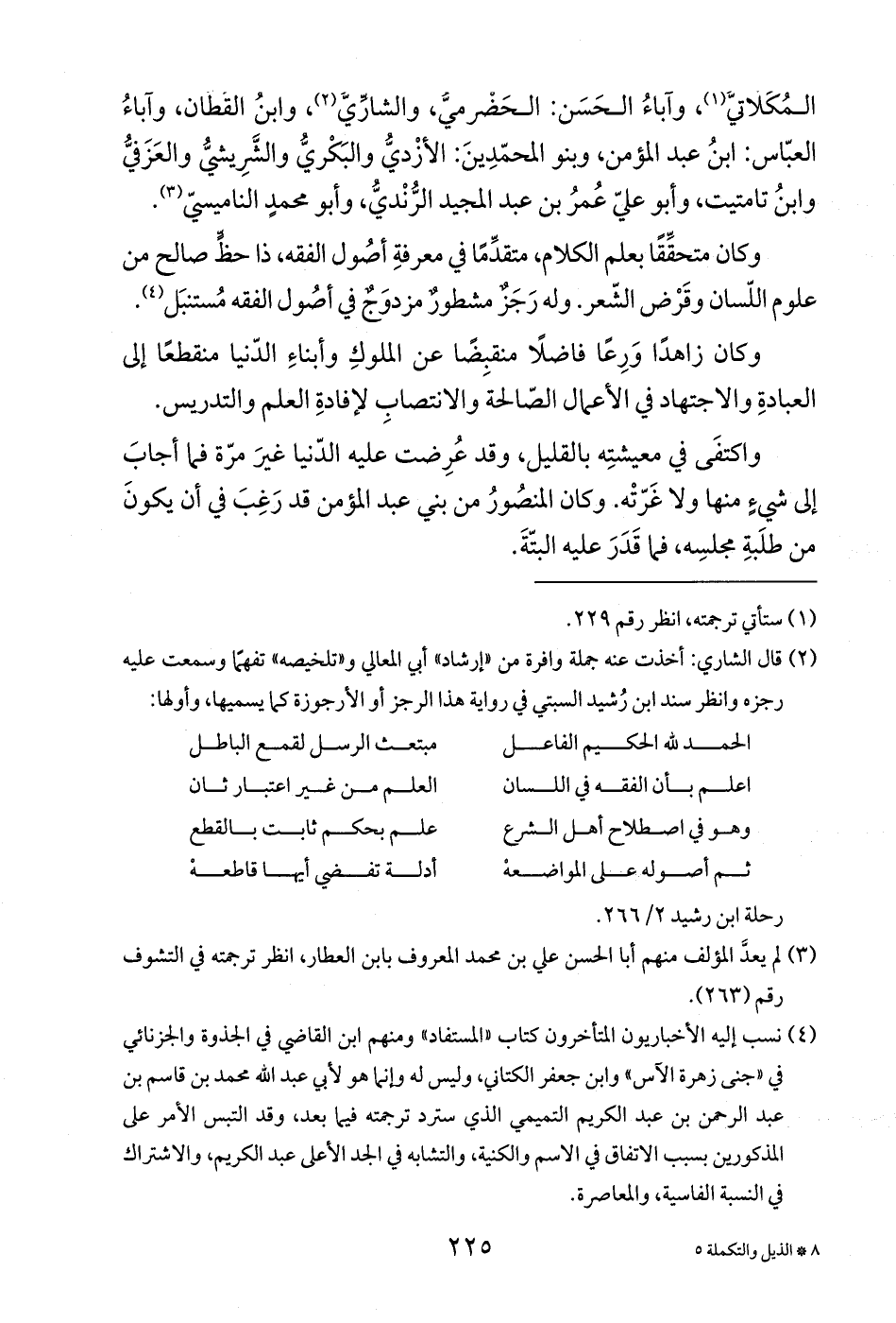 (¬2) قال الشاري: أخذت عنه جملة وافرة من "إرشاد" أبي المعالي و"تلخيصه" تفهمًا وسمعت عليه رجزه وانظر سند ابن رُشيد السبتي في رواية هذا الرجز أو الأرجوزة كما يسميها، وأولها: