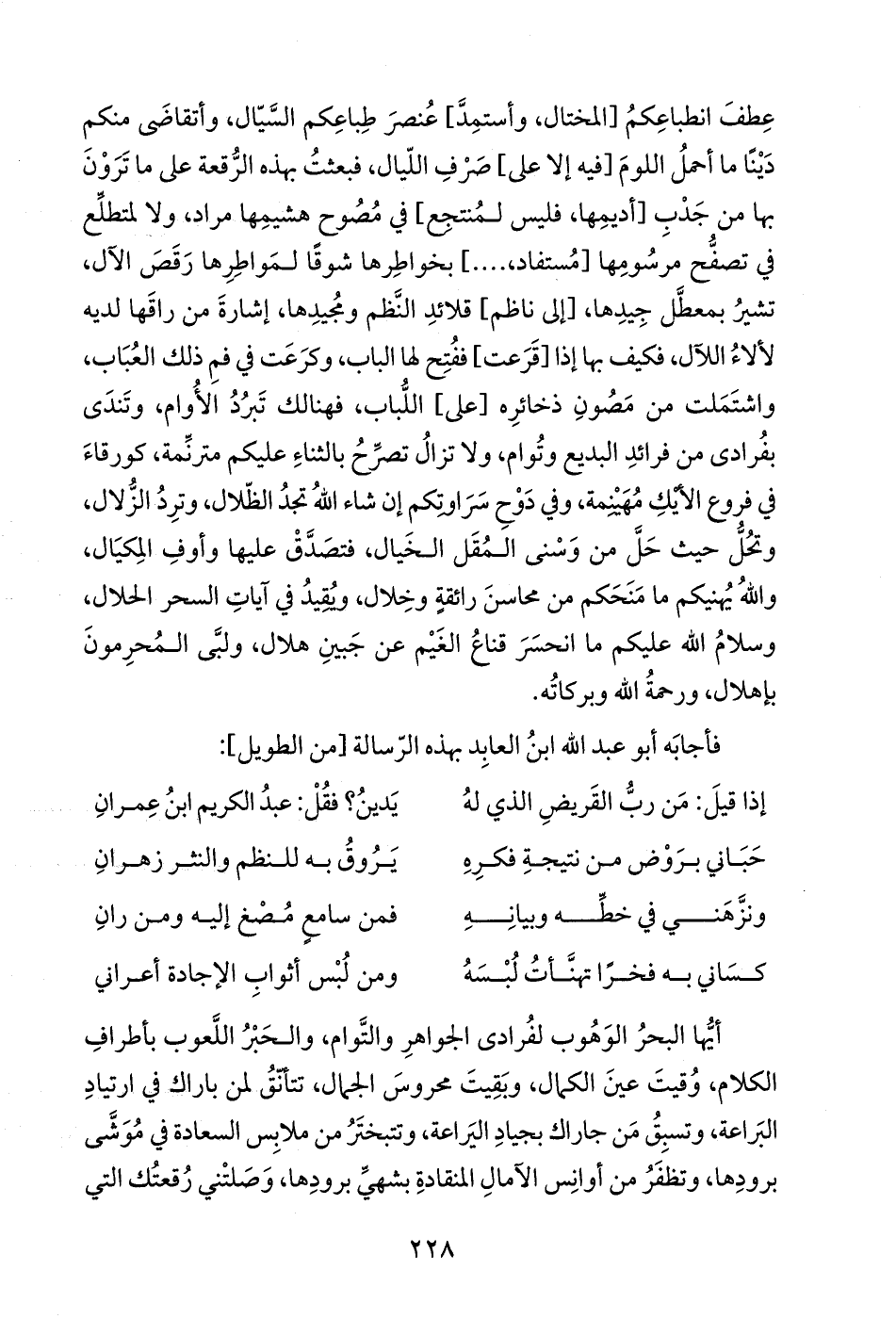 فأجابَه أبو عبد الله ابنُ العابِد بهذه الرّسالة [من الطويل]: