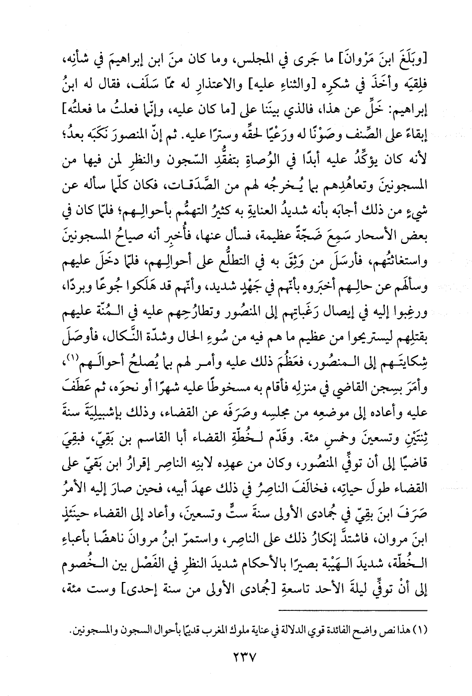 (¬1) هذا نص واضح الفائدة قوي الدلالة في عناية ملوك المغرب قديمًا بأحوال السجون والمسجونين.