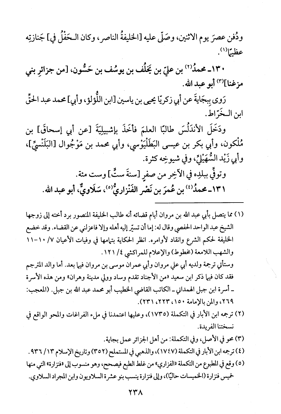 (¬5) وقع في المطبوع من التكملة "الفزاري" من غلط الطبع فيصحح، وهو منسوب إلى "فنزارة" التي منها خميس فنزارة (الخميسات حاليًا)، وإلى فنزارة ينسب بنو عشرة السلاويون وابن المجراد السلاوي.