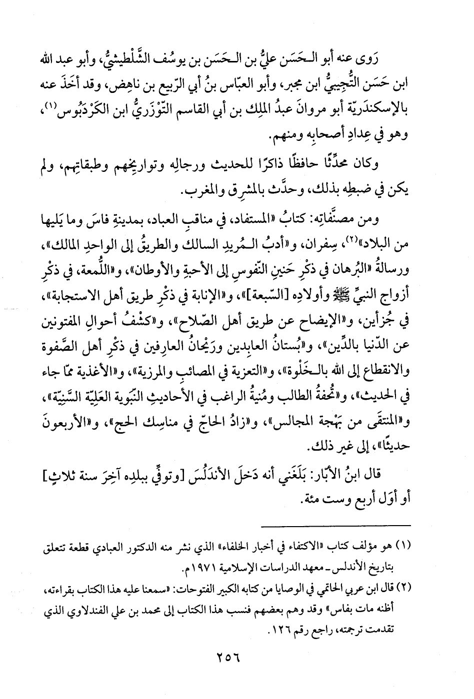 (¬2) قال ابن عربي الحاتمي في الوصايا من كتابه الكبير الفتوحات: "سمعنا عليه هذا الكتاب بقراءته، أظنه مات بفاس" وقد وهم بعضهم فنسب هذا الكتاب إلى محمد بن علي الفندلاوي الذي تقدمت ترجمته، راجع رقم 126.