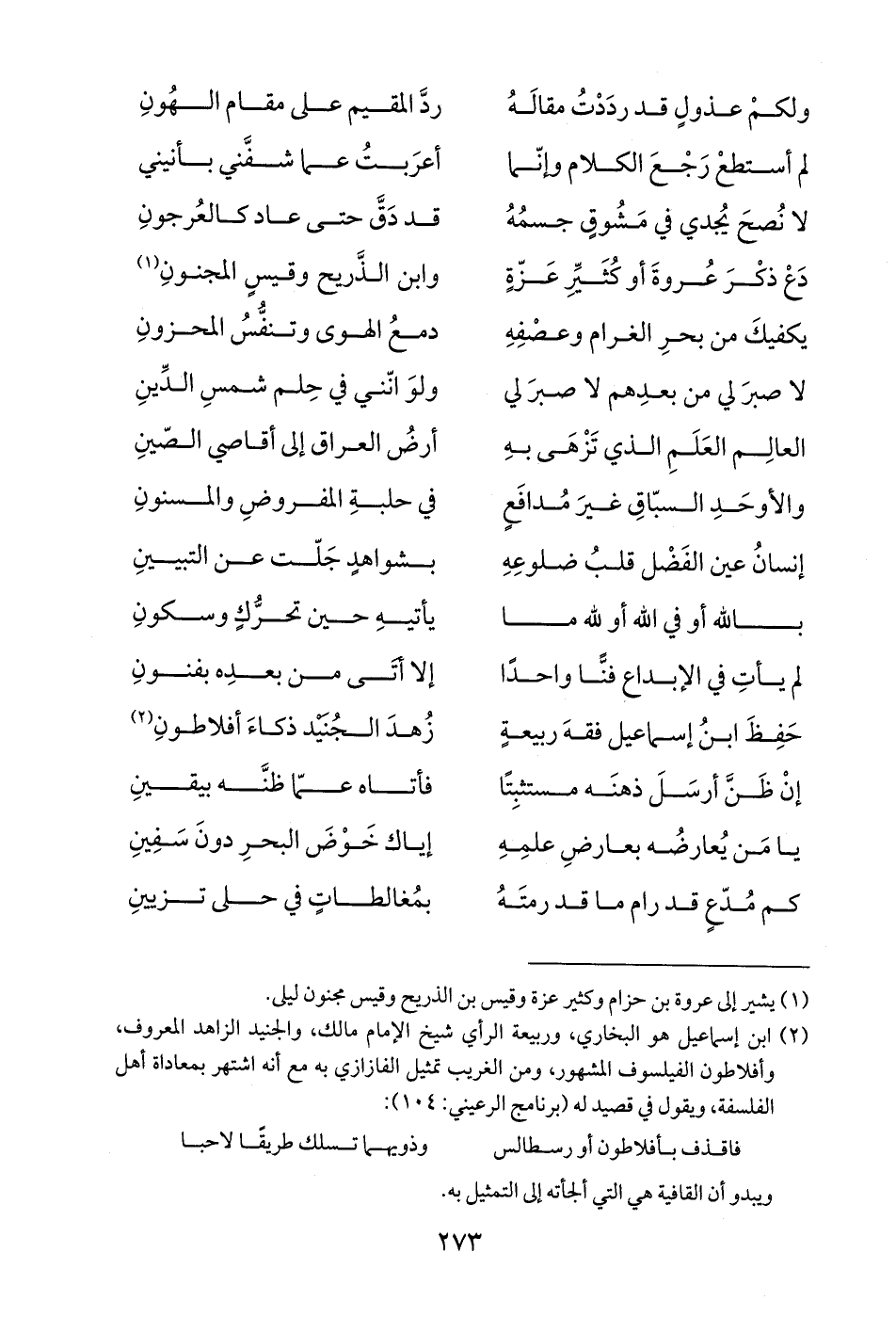 (¬1) يشير إلى عروة بن حزام وكثير عزة وقيس بن الذريح وقيس مجنون ليلى.