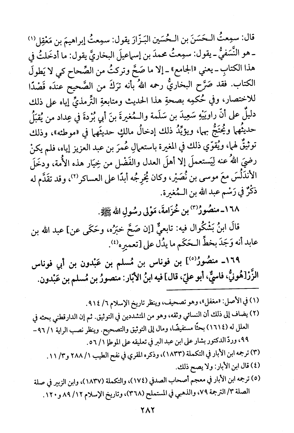 (¬2) يضاف إلى ذلك أن النسائي وثقه، وهو من المتشددين في التوثيق. ثم إن الدارقطني بحثه في العلل له (1614) بحثًا مستفيضًا، ومال إلى التوثيق والتصحيح. وينظر نصب الراية 1/ 96 - 99، ورد الدكتور بشار على ابن عبد البر في تعليقه على الموطإ 1/ 56.