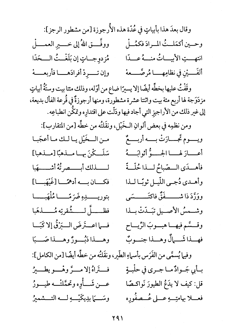 وفيما يُسمَّى من الفَرَس بأسماءِ الطّير، ونقَلتُه من خطِّه أيضًا [من الكامل]: