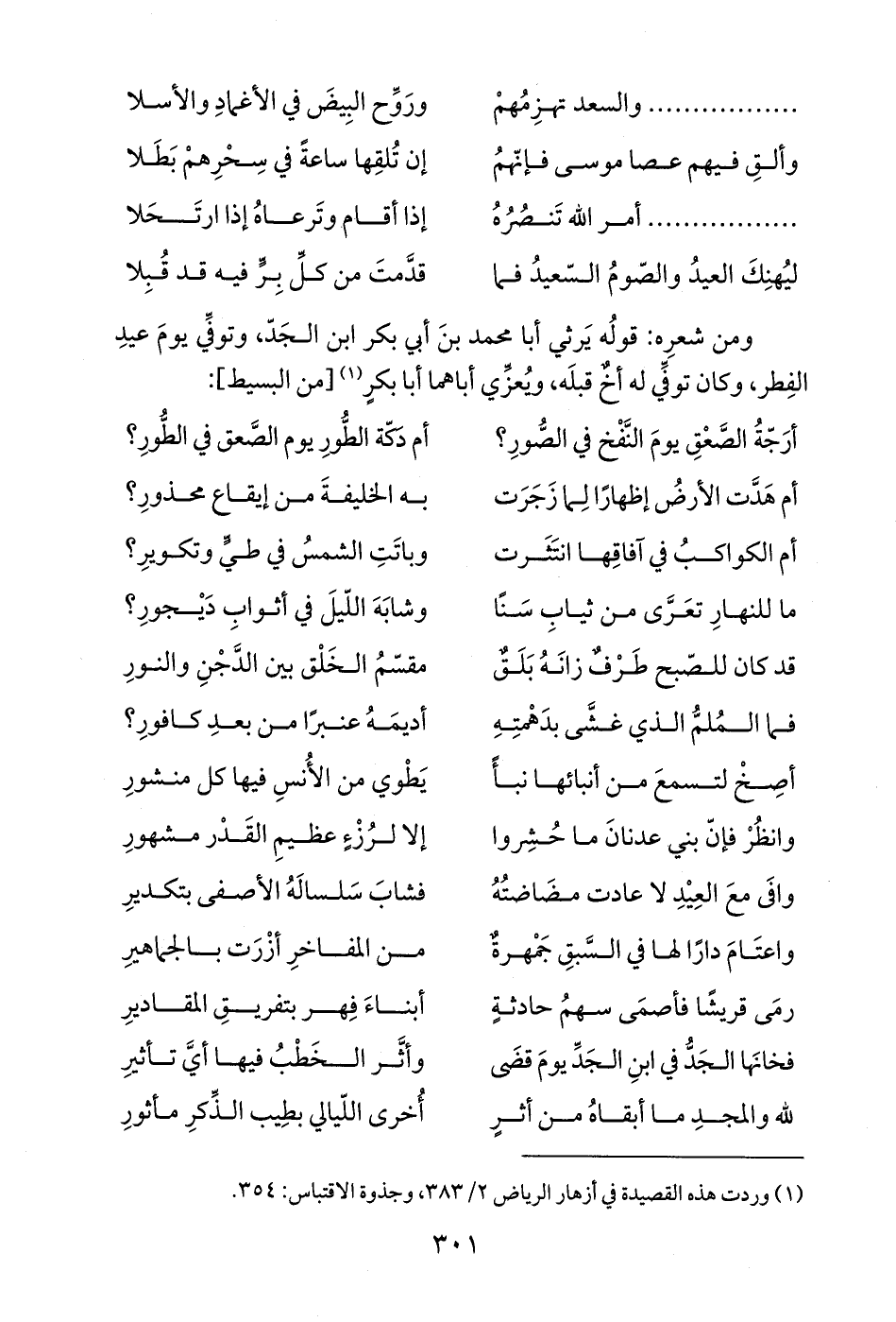 ومن شعرِه: قولُه يَرثي أبا محمد بنَ أبي بكر ابن الجَدّ، وتوفِّي يومَ عيدِ الفِطر، وكان توفِّي له أخٌ قبلَه، ويُعزِّي أباهما أبا بكرٍ (¬1) [من البسيط]: