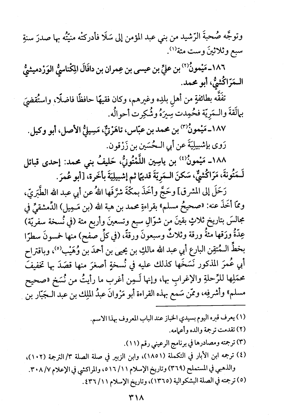188 - مَيْمونُ (¬4) بن ياسِين اللَّمْتُونيُّ، حَليفُ بني محمد: إحدى قبائل لَمَتُونةَ، مَرّاكُشيٌّ، سَكنَ المَرِيّةَ قديمًا ثم إشبيلِيَةَ بأخَرة، [أبو عُمرَ.