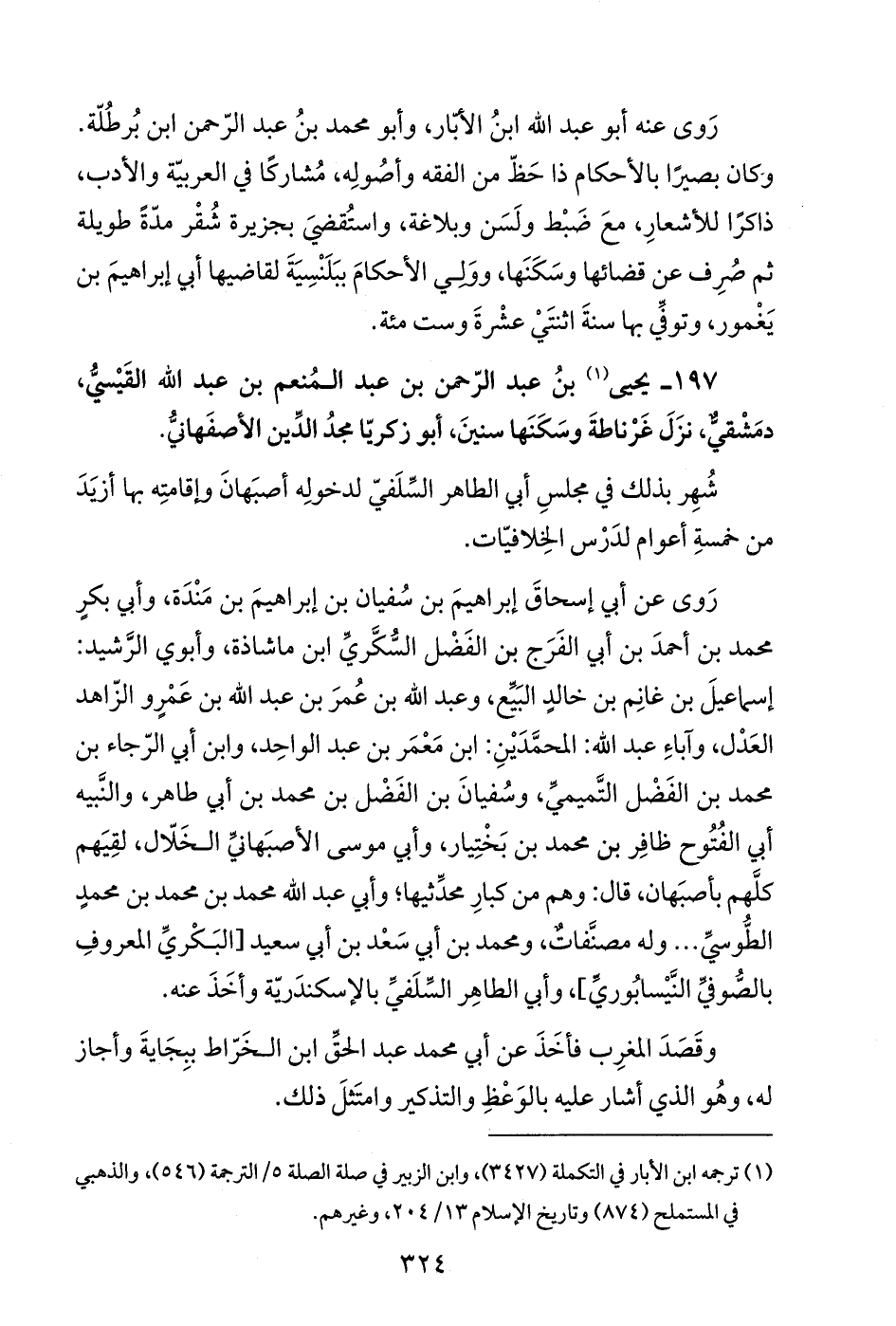 197 - يحيى (¬1) بنُ عبد الرّحمن بن عبد المُنعم بن عبد الله القَيْسيُّ، دمَشْقيٌّ، نزَلَ غَرْناطةَ وسَكَنَها سنينَ، أبو زكريّا مجدُ الدِّين الأصفَهانيُّ.
