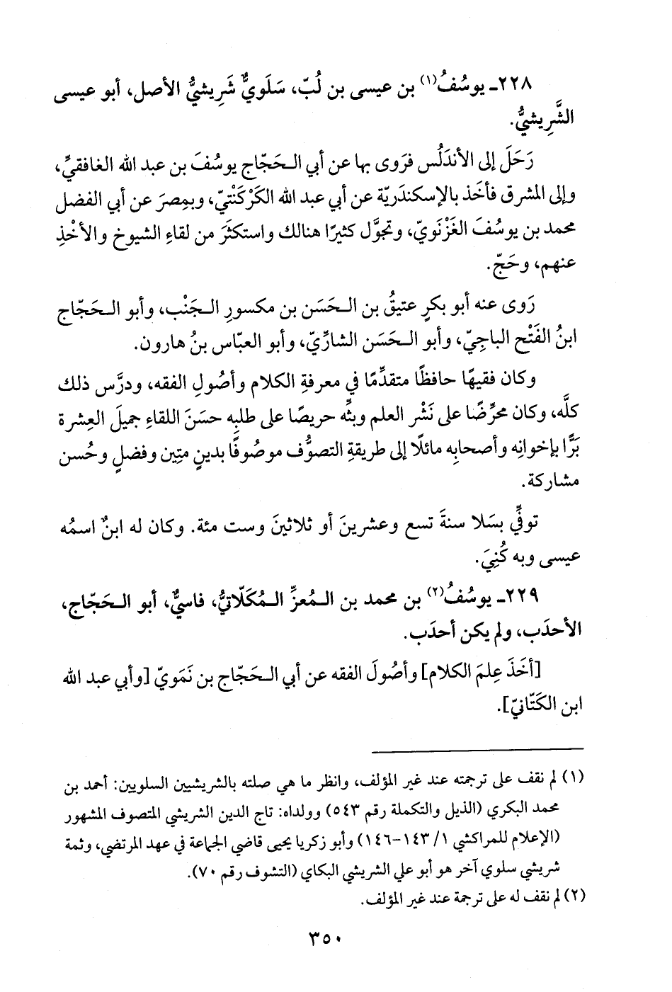 229 - يوسُفُ (¬2) بن محمد بن المُعزِّ المُكّلانيُّ، فاسيٌّ، أبو الحَجّاج، الأحدَب، ولم يكن أحدَب.