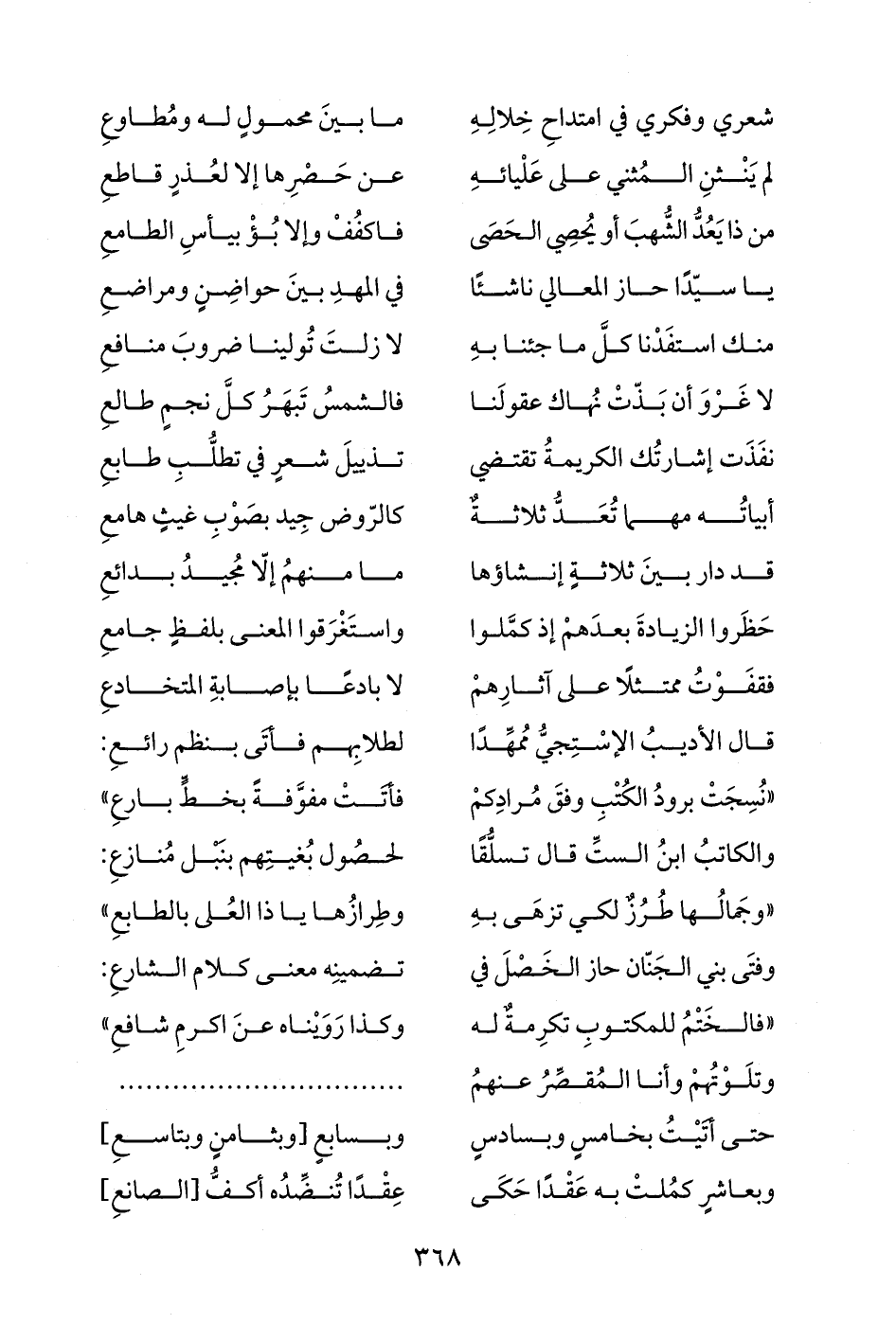 "نُسِجَتْ برودُ الكُتْبِ وفقَ مُرادِكمْ ... فأتَتْ مفوَّفةً بخطٍّ بارعِ"