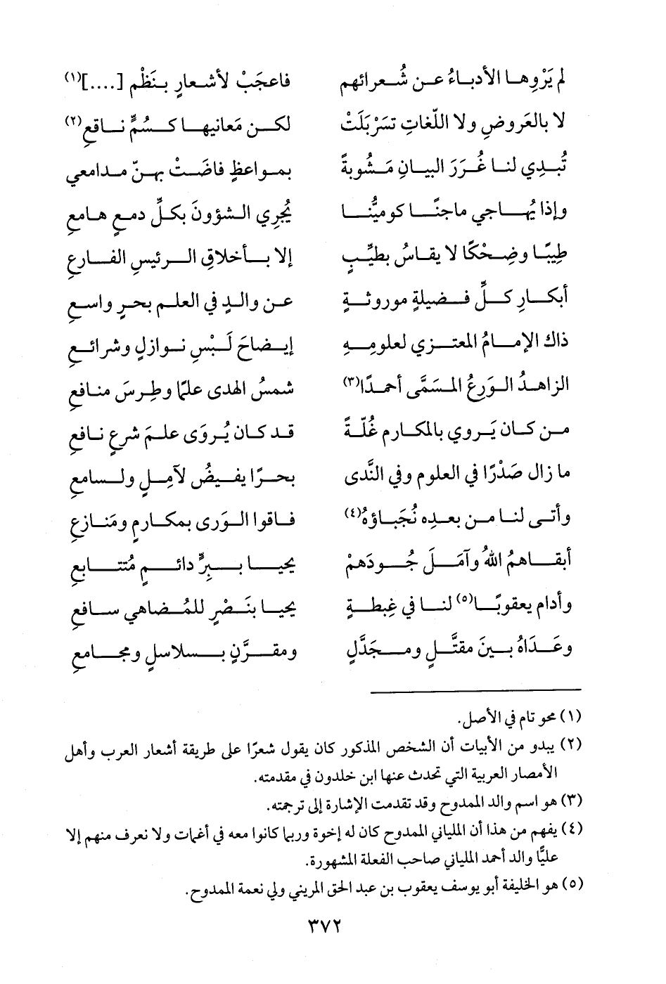 (¬2) يبدو من الأبيات أن الشخص المذكور كان يقول شعرًا على طريقة أشعار العرب وأهل الأمصار العربية التي تحدث عنها ابن خلدون في مقدمته.