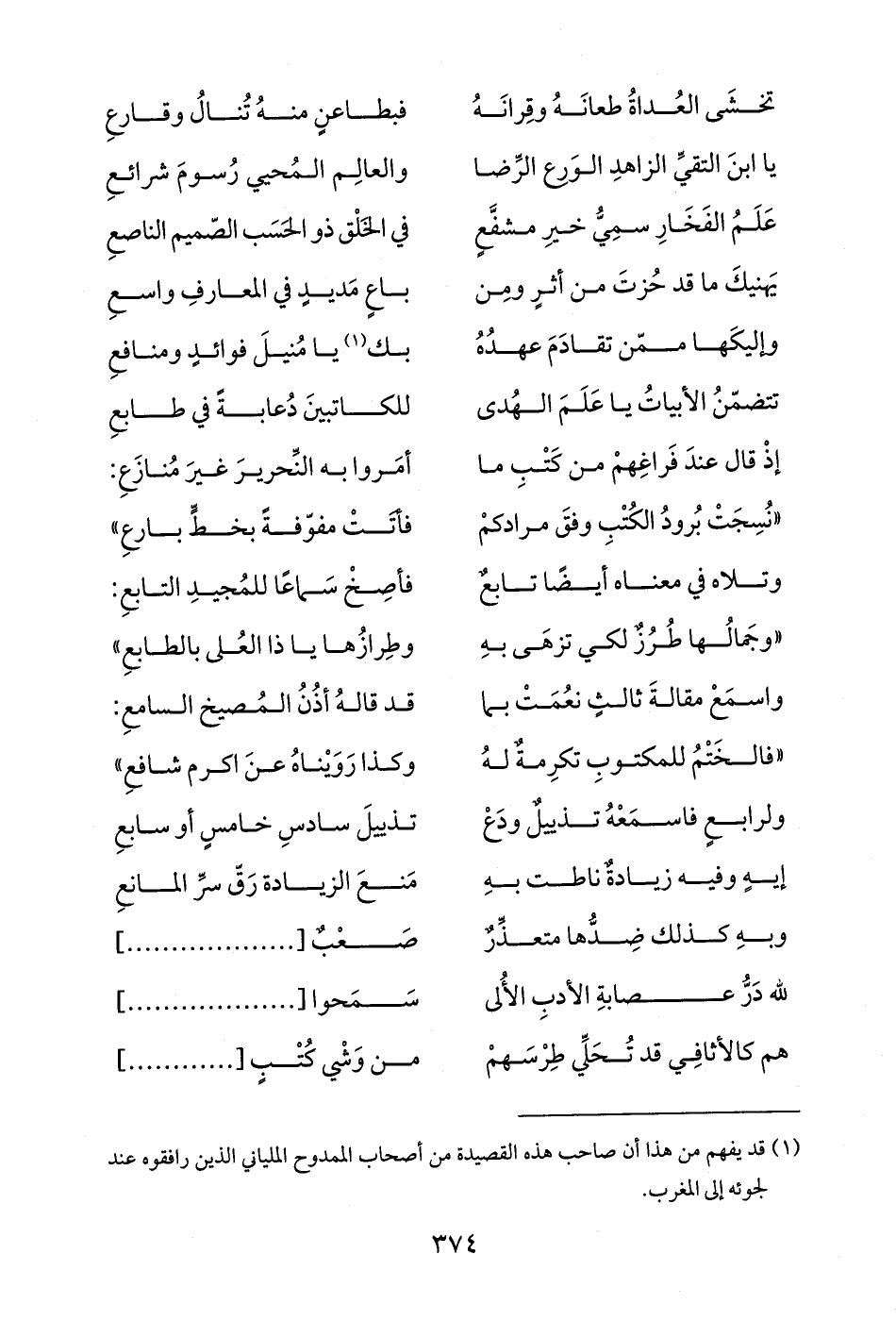 (¬1) قد يفهم من هذا أن صاحب هذه القصيدة من أصحاب الممدوح الملياني الذين رافقوه عند لجوئه إلى المغرب.