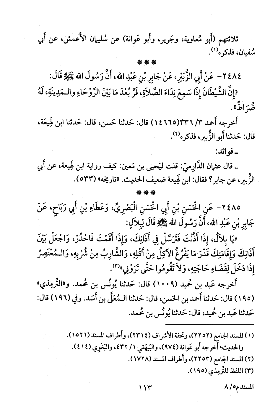 ٢٤٨٤ - عن أبي الزبير، عن جابر بن عبد الله، أن رسول الله صَلى الله عَليه وسَلم قال: