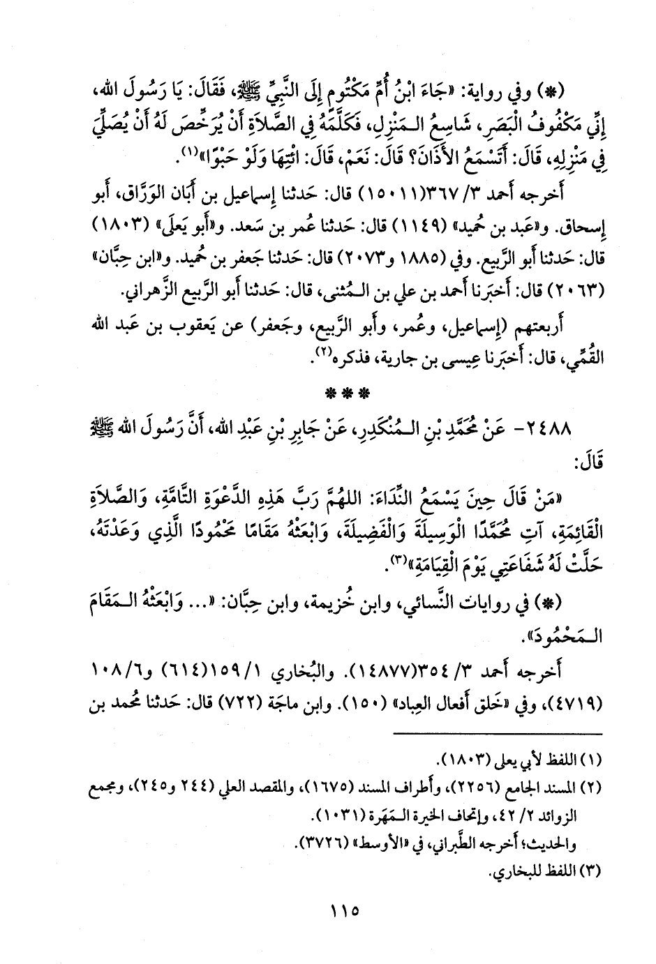 ٢٤٨٨ - عن محمد بن المُنكدِر، عن جابر بن عبد الله، أن رسول الله صَلى الله عَليه وسَلم قال: