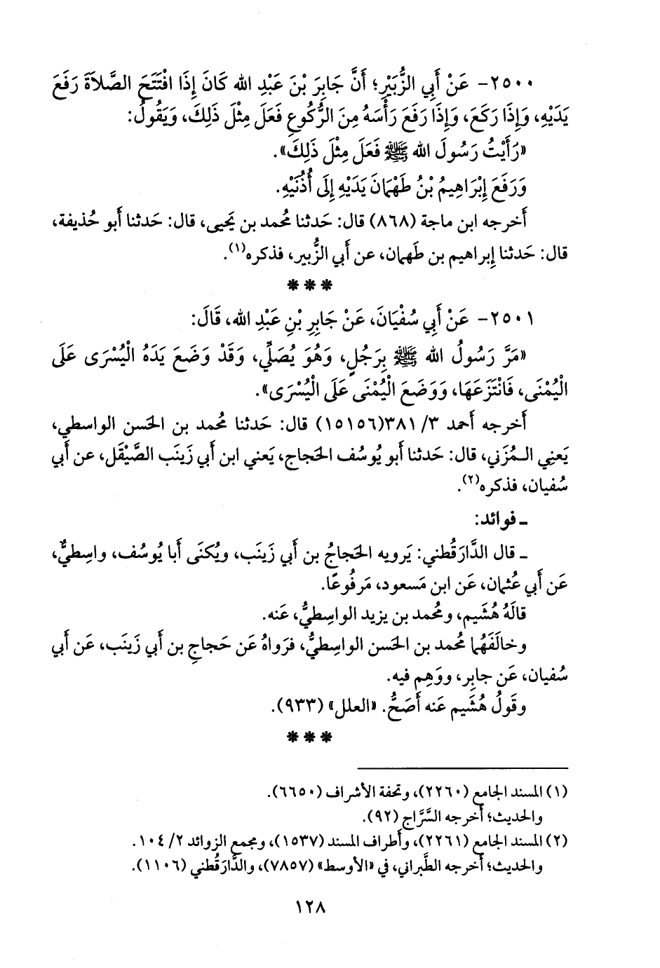 ٢٥٠٠ - عن أبي الزبير؛ أن جابر بن عبد الله كان إذا افتتح الصلاة رفع يديه، وإذا ركع، وإذا رفع رأسه من الركوع فعل مثل ذلك، ويقول: