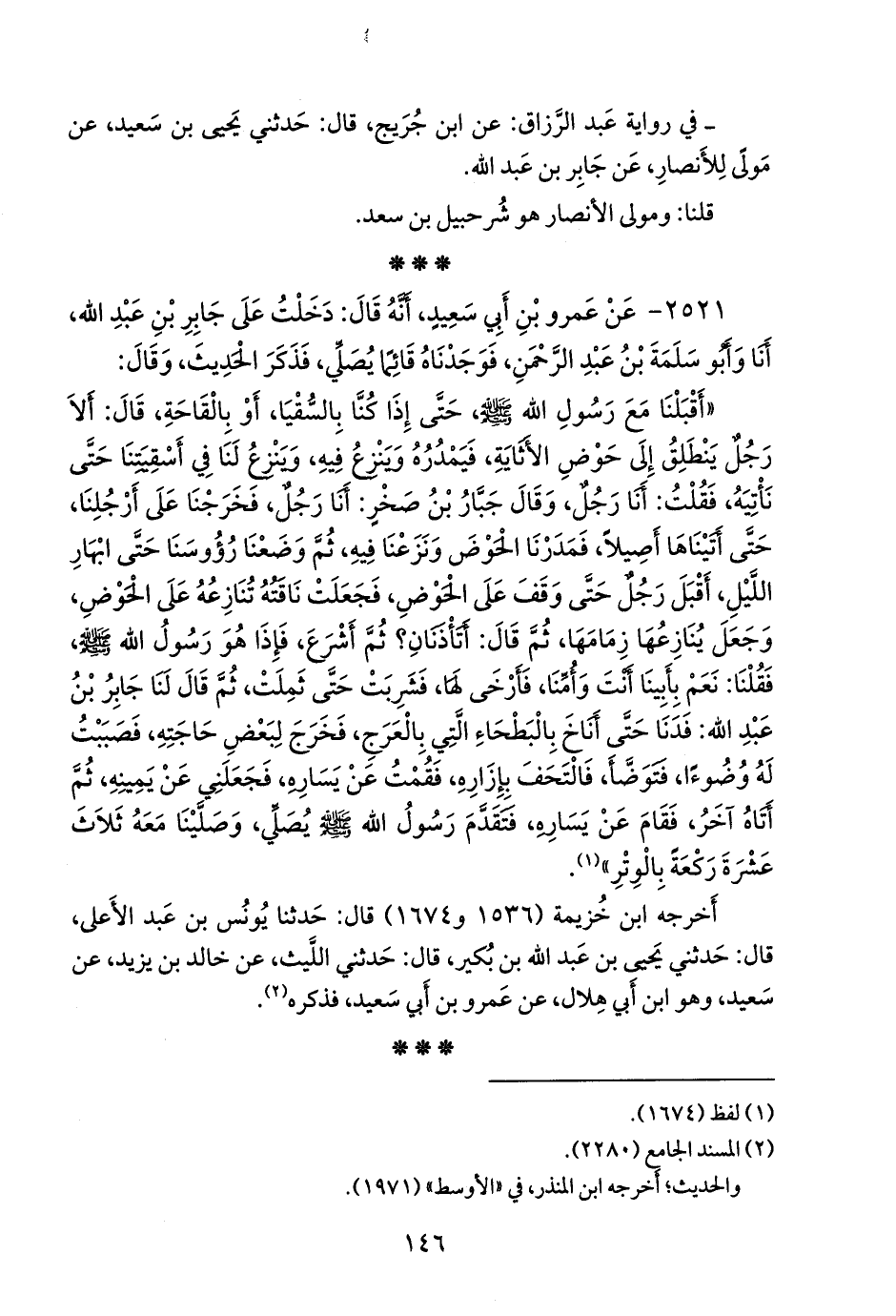٢٥٢١ - عن عَمرو بن أبي سعيد، أنه قال: دخلت على جابر بن عبد الله، أنا وأَبو سلمة بن عبد الرَّحمَن، فوجدناه قائمًا يصلي، فذكر الحديث، وقال: