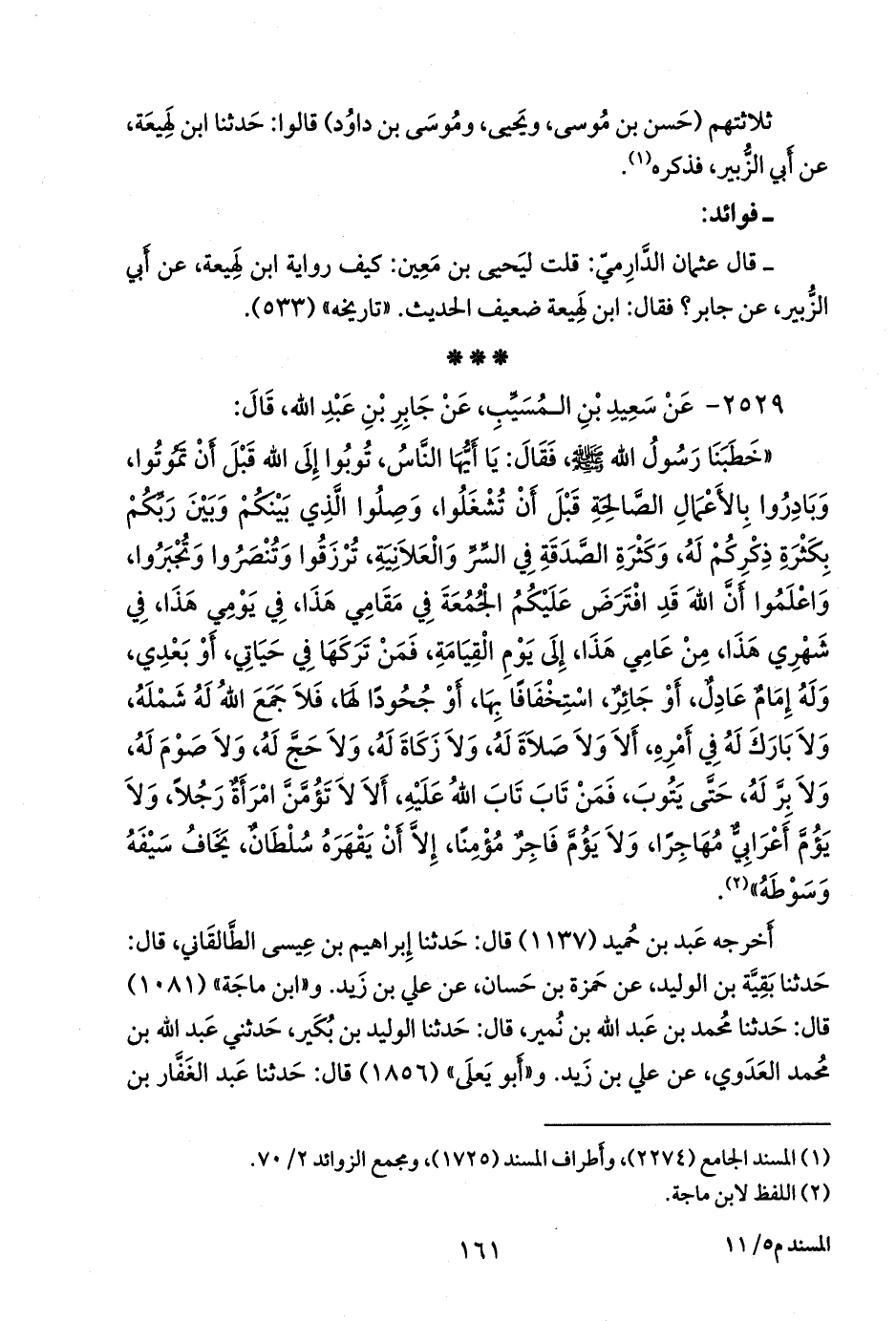٢٥٢٩ - عن سعيد بن المُسَيب، عن جابر بن عبد الله، قال:
