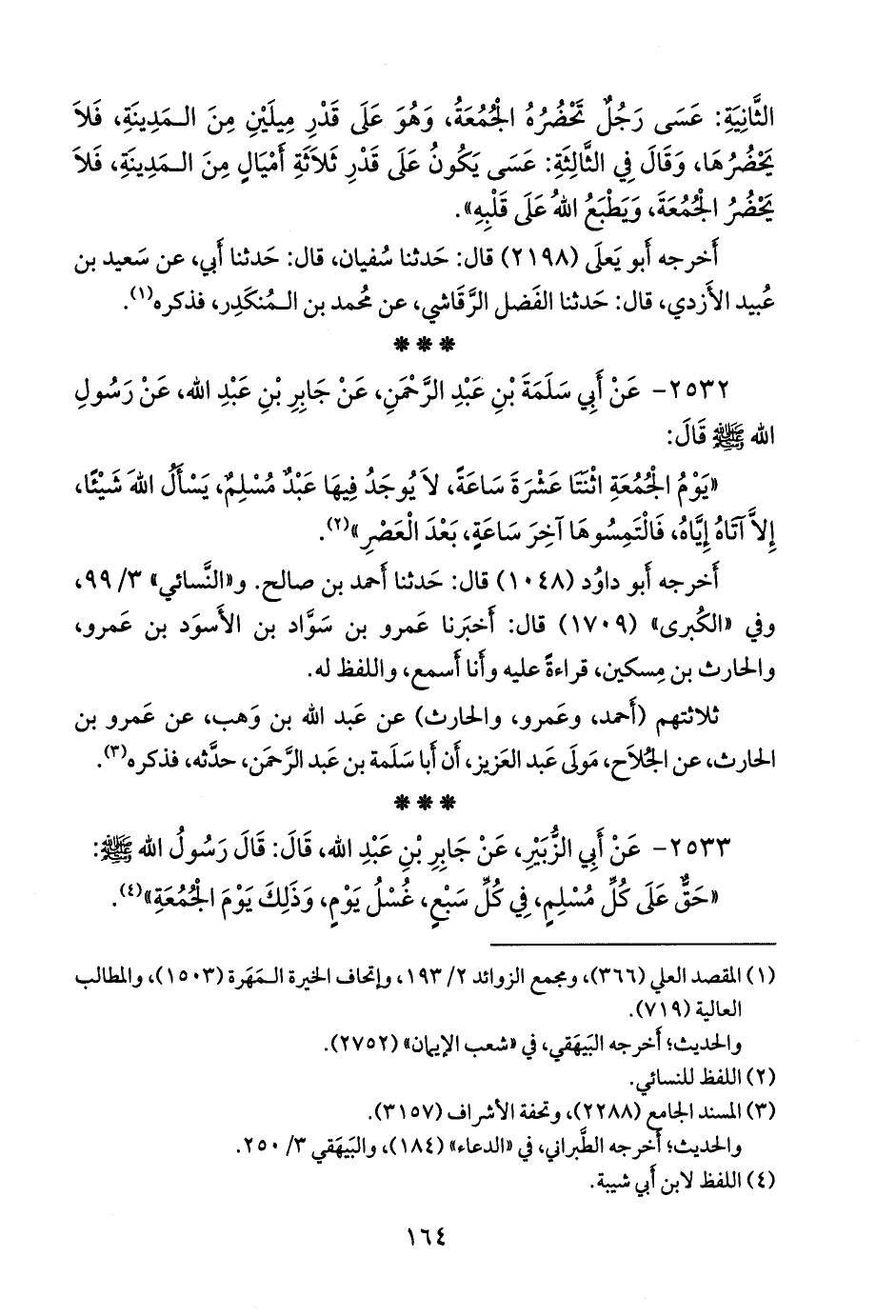 - أخرجه ابن أبي شيبة (٥٠٤٥) قال: حدثنا محمد بن فضيل، عن داود، عن أبي الزبير، عن جابر، قال: حق على كل مسلم، غسل يوم، بين سبعة أيام، وهو يوم الجمعة. «موقوف».