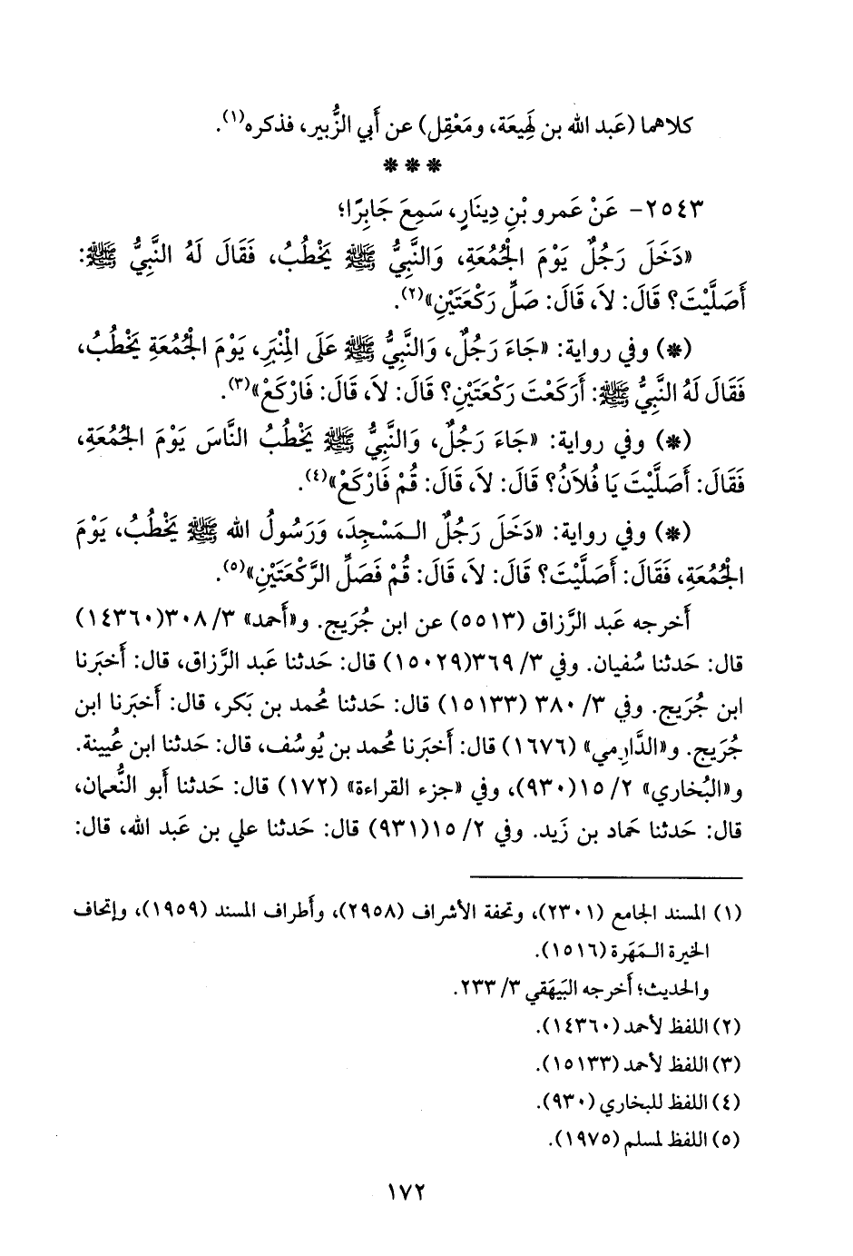 حدثنا سفيان. و «مسلم» ٣/ ١٤ (١٩٧٣) قال: حدثنا أَبو الربيع الزهراني، وقتيبة بن سعيد، قالا: حدثنا حماد، وهو ابن زيد. وفي (١٩٧٤) قال: حدثنا أَبو بكر بن أبي شيبة، ويعقوب الدورقي، عن ابن عُلَية، عن أيوب. وفي (١٩٧٥) قال: وحدثنا قتيبة بن سعيد، وإسحاق بن إبراهيم، قال قتيبة: حدثنا، وقال إسحاق: أخبرنا سفيان. وفي (١٩٧٦) قال: وحدثني محمد بن رافع، وعَبد بن حُميد، قال ابن رافع: حدثنا عبد الرزاق، قال: أخبرنا ابن جُريج. و «أَبو داود» (١١١٥) قال: حدثنا سليمان بن حرب، قال: حدثنا حماد. و «التِّرمِذي» (٥١٠) قال: حدثنا قتيبة، قال: حدثنا حماد بن زيد. و «النَّسَائي» ٣/ ١٠٣، وفي «الكبرى» (١٧١٦) قال: أخبرنا إبراهيم بن الحسن، ويوسف بن سعيد، قالا: حدثنا حجاج، عن ابن جُريج. وفي ٣/ ١٠٧، وفي «الكبرى» (١٧٢٩) قال: أخبرنا قتيبة، قال: حدثنا حماد بن زيد. و «أَبو يَعلى» (١٨٣٠) قال: حدثنا أَبو خيثمة، قال: حدثنا سفيان. وفي (١٩٦٩) قال: حدثنا عَمرو، قال: حدثنا سفيان. وفي (١٩٨٨) قال: حدثنا عُبيد الله القواريري، قال: حدثنا حماد. وفي (١٩٨٩) قال: حدثناه إسحاق، قال: حدثنا حماد بن زيد. و «ابن خزيمة» (١٨٣٣) قال: حدثنا أحمد بن عَبدة، وبشر بن معاذ، وأحمد بن المقدام، قالوا: حدثنا حماد، وهو ابن زيد (ح) وحدثنا يعقوب بن إبراهيم الدورقي، قال: حدثنا ابن عُلَية، عن أيوب (ح) وحدثنا بشر بن معاذ، قال: حدثنا يزيد، يعني ابن زُريع، قال: حدثنا روح بن القاسم (ح) وحدثنا عبد الله بن إسحاق الجوهري، قال: أخبرنا أَبو عاصم، عن ابن جُريج. وفي (١٨٣٤) قال: حدثنا محمد بن رافع، قال: حدثنا عبد الرزاق، قال: أخبرنا ابن جُريج.