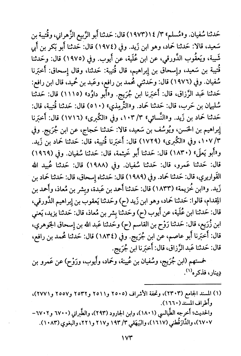 خمستهم (عبد الملك بن جُريج، وسفيان بن عُيينة، وحماد، وأيوب، وروح) عن عَمرو بن دينار، فذكره (¬١).