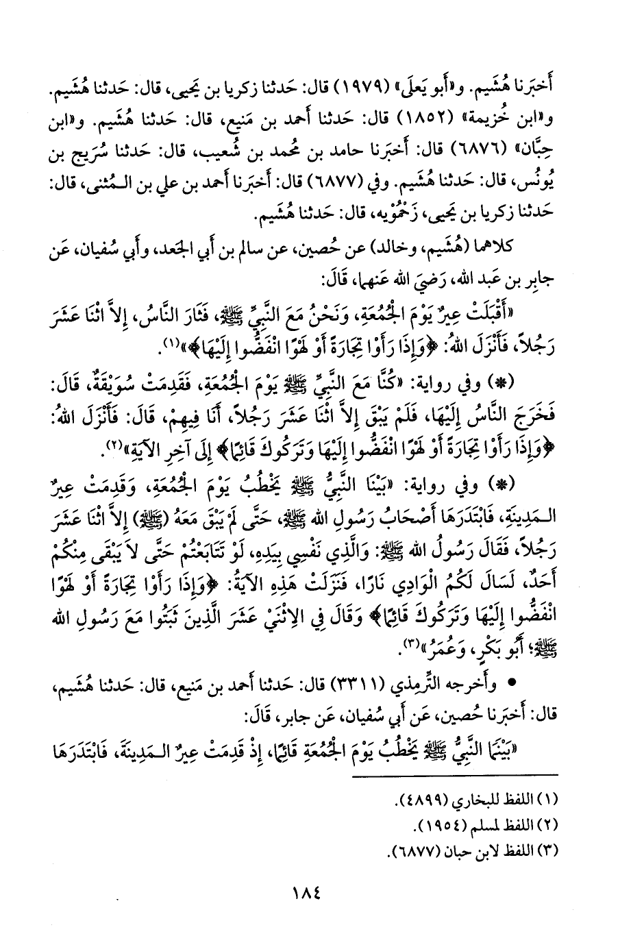 «بينما النبي صَلى الله عَليه وسَلم يخطب يوم الجمعة قائما، إذ قدمت عيرٌ المدينةَ، فابتدرها