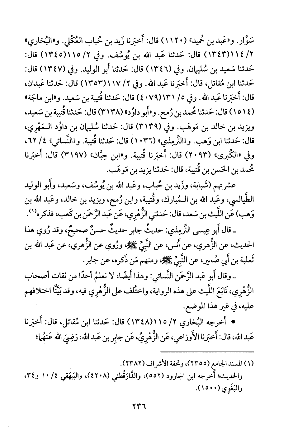 (¬٣) قال ابن حجر: ساق المصنف، يعني البخاري، حديث جابر من طريق ابن المبارك عن الليث متصلا، وعن الأوزاعي، منقطعا، لأن ابن شهاب لم يسمع من جابر. «فتح الباري» ٣/ ٢١٣.