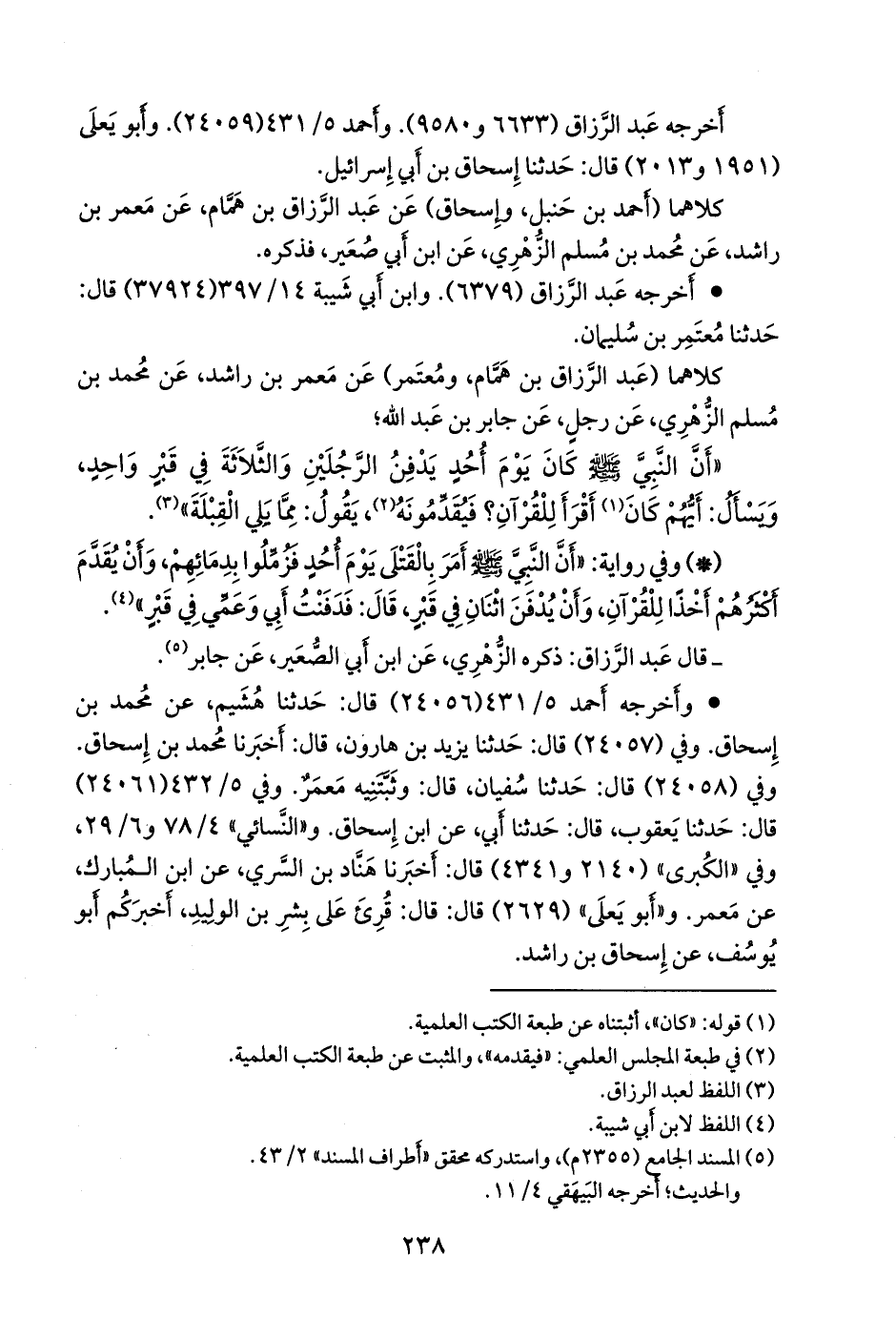 - وأخرجه أحمد (٢٤٠٥٦) قال: حدثنا هُشيم، عن محمد بن إسحاق. وفي (٢٤٠٥٧) قال: حدثنا يزيد بن هارون، قال: أخبرنا محمد بن إسحاق. وفي (٢٤٠٥٨) قال: حدثنا سفيان، قال: وثبتنيه معمر. وفي ٥/ ٤٣٢ (٢٤٠٦١) قال: حدثنا يعقوب، قال: حدثنا أبي، عن ابن إسحاق. و «النَّسَائي» ٤/ ٧٨ و ٦/ ٢٩، وفي «الكبرى» (٢١٤٠ و ٤٣٤١) قال: أخبرنا هَنَّاد بن السَّري، عن ابن المبارك، عن معمر. و «أَبو يَعلى» (٢٦٢٩) قال: قُرئ على بشر بن الوليد، أخبركم أَبو يوسف، عن إسحاق بن راشد.