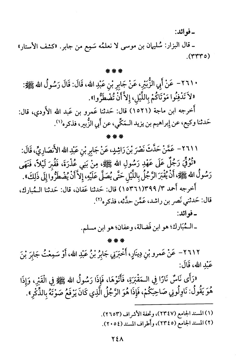 ٢٦١٠ - عن أبي الزبير، عن جابر بن عبد الله، قال: قال رسول الله صَلى الله عَليه وسَلم: