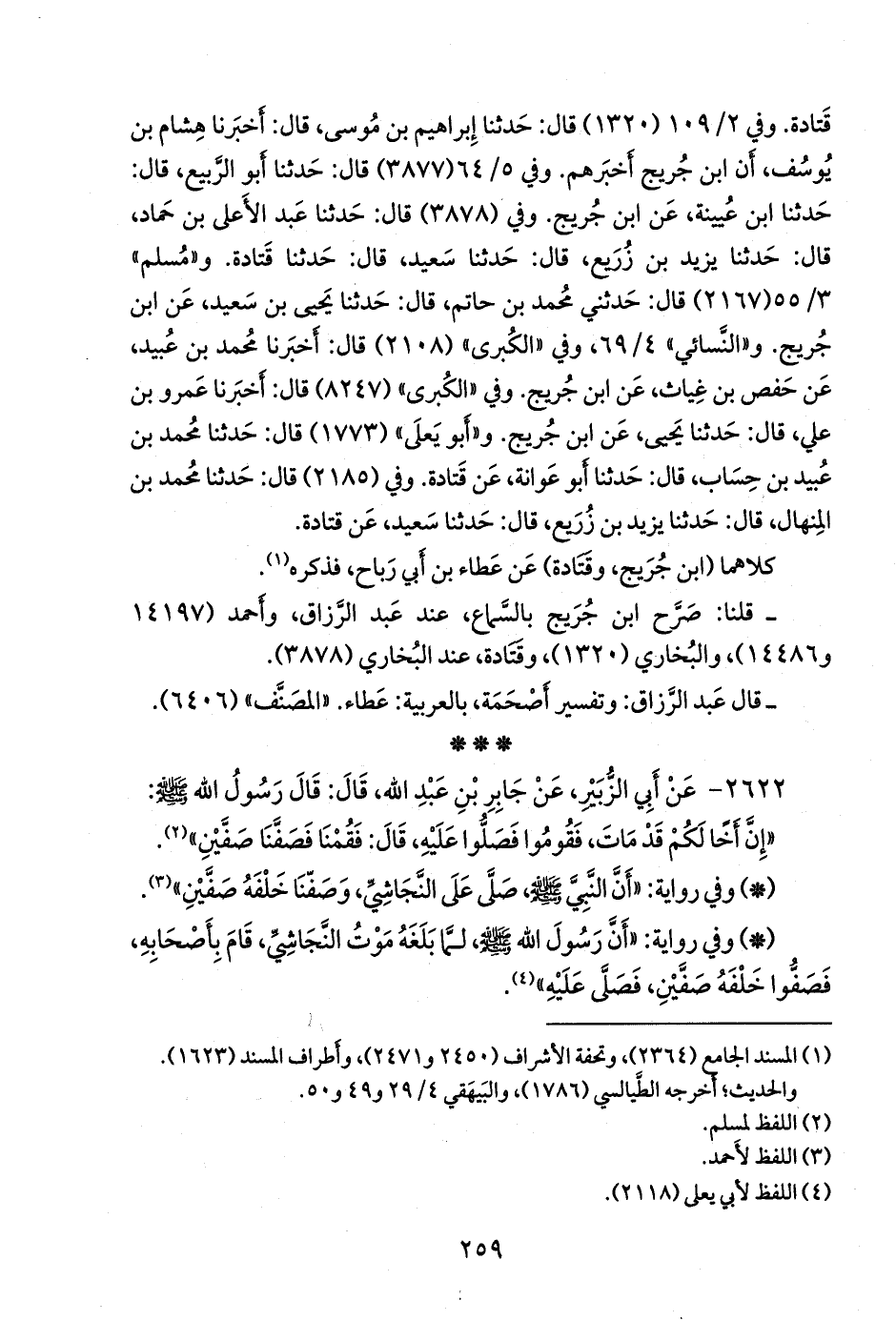 وفي ٢/ ٨٦ (١٣٢٠) قال: حدثنا إبراهيم بن موسى، قال: أخبرنا هشام بن يوسف، أن ابن جُريج أخبرهم. وفي ٥/ ٥١ (٣٨٧٧) قال: حدثنا أَبو الربيع، قال: حدثنا ابن عُيينة، عن ابن جُريج. وفي (٣٨٧٨) قال: حدثنا عبد الأعلى بن حماد، قال: حدثنا يزيد بن زُريع، قال: حدثنا سعيد، قال: حدثنا قتادة. و «مسلم» ٣/ ٥٥ (٢١٦٧) قال: حدثني محمد بن حاتم, قال: حدثنا يحيى بن سعيد، عن ابن جُريج. و «النَّسَائي» ٤/ ٦٩، وفي «الكبرى» (٢١٠٨) قال: أخبرنا محمد بن عبيد، عن حفص بن غياث، عن ابن جُريج. وفي «الكبرى» (٨٢٤٧) قال: أخبرنا عَمرو بن علي، قال: حدثنا يحيى، عن ابن جُريج. و «أَبو يَعلى» (١٧٧٣) قال: حدثنا محمد بن عبيد بن حساب، قال: حدثنا أَبو عَوانة، عن قتادة. وفي (٢١٨٥) قال: حدثنا محمد بن المنهال، قال: حدثنا يزيد بن زُريع، قال: حدثنا سعيد، عن قتادة.