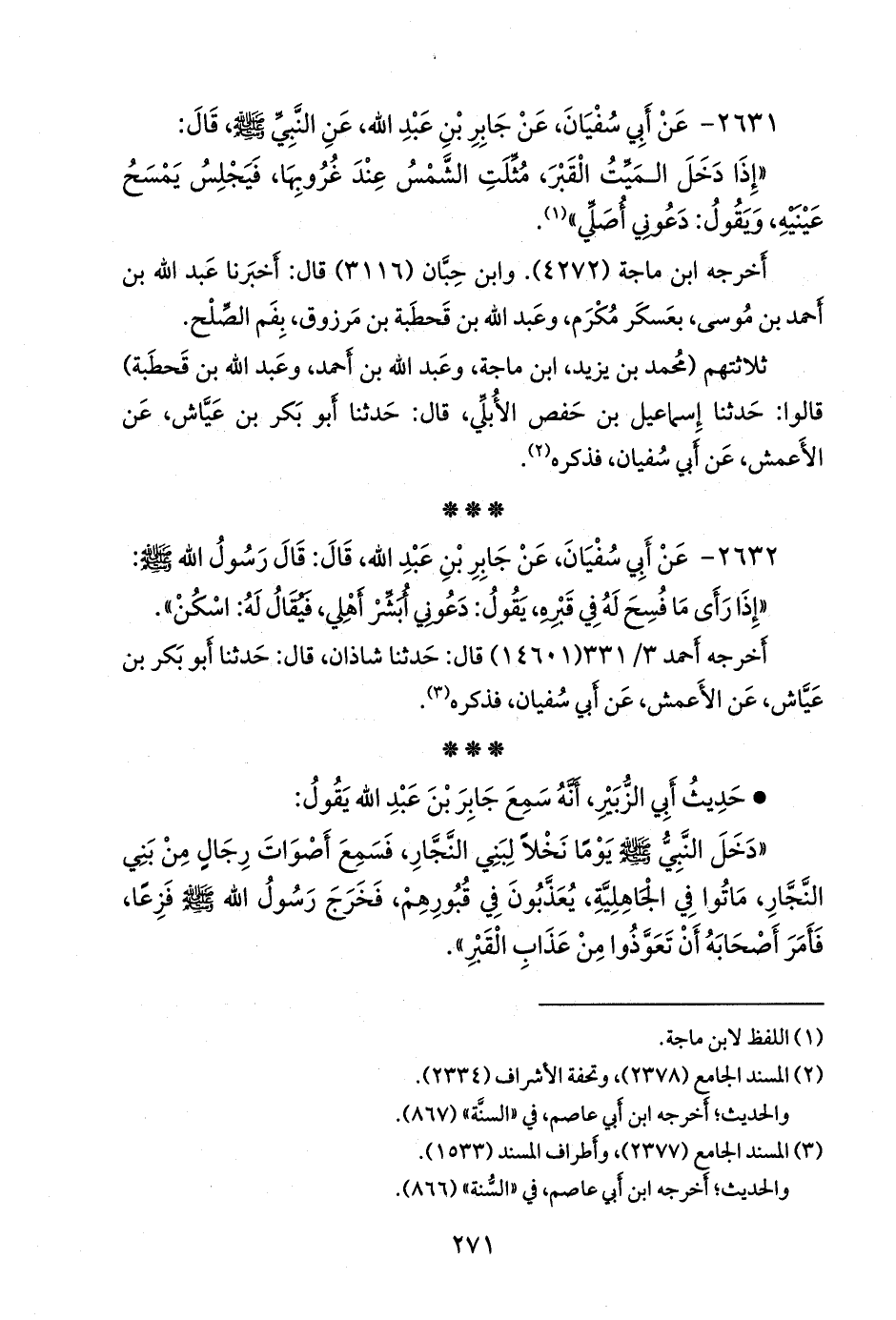 ثلاثتهم (محمد بن يزيد، ابن ماجة, وعبد الله بن أحمد، وعبد الله بن قَحطَبة) عن إسماعيل بن حفص الأبلي، قال: حدثنا أَبو بكر بن عياش، عن الأعمش، عن أبي سفيان، فذكره (¬٢).