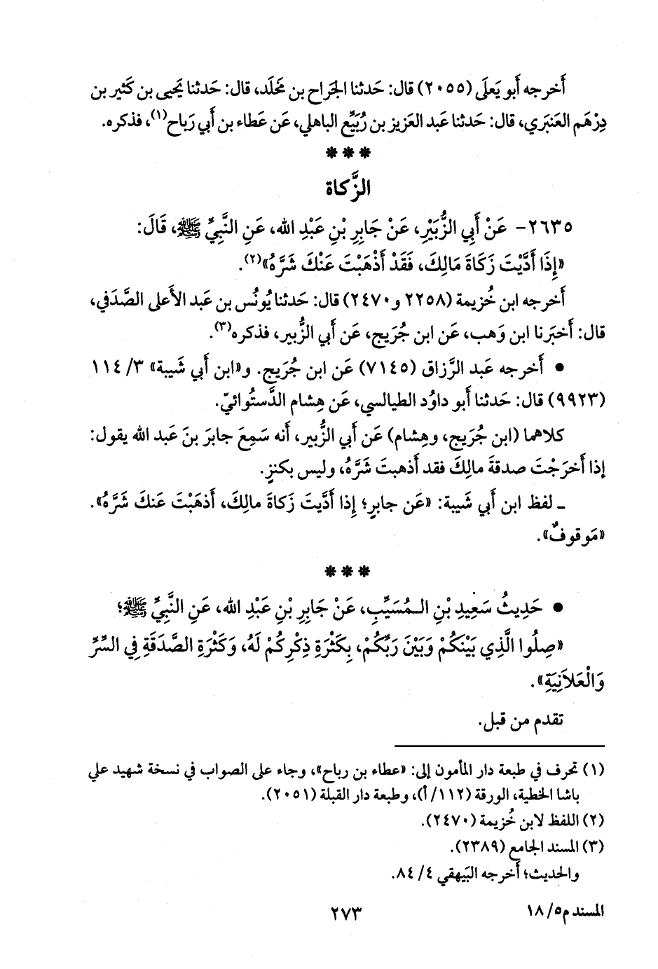٢٦٣٥ - عن أبي الزبير، عن جابر بن عبد الله، عن النبي صَلى الله عَليه وسَلم قال: