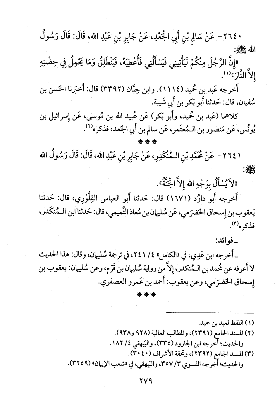 ٢٦٤٠ - عن سالم بن أبي الجعد، عن جابر بن عبد الله، قال: قال رسول الله صَلى الله عَليه وسَلم: