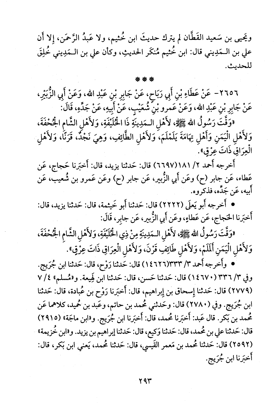 ٢٦٥٦ - عن عطاء بن أبي رباح، عن جابر بن عبد الله، وعن أبي الزبير، عن جابر بن عبد الله، وعن عَمرو بن شعيب، عن أبيه، عن جَدِّه، قال: