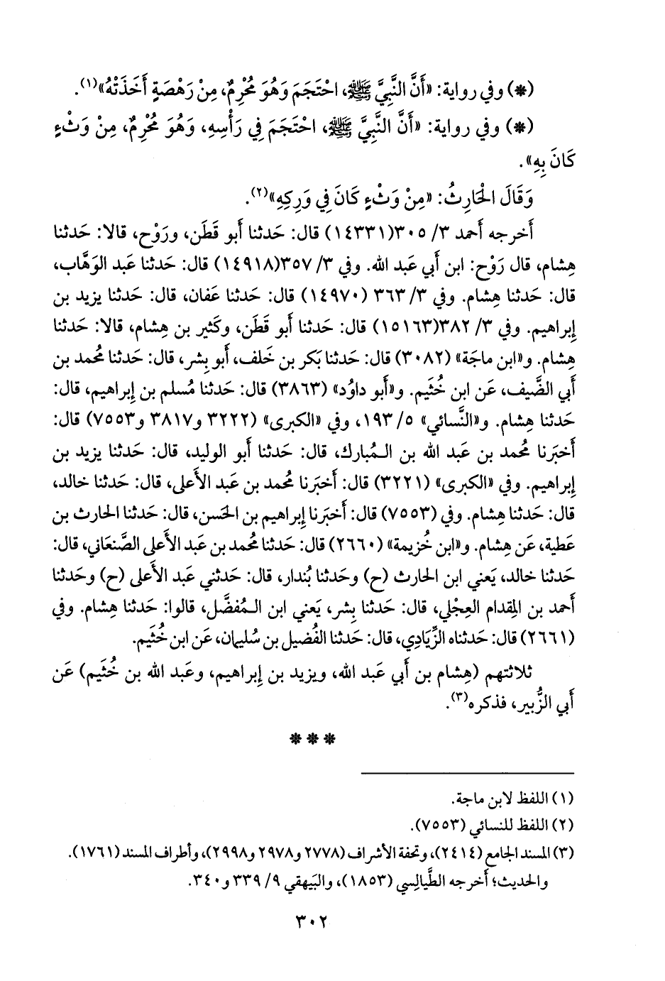 وفي ٣/ ٣٨٢ (١٥١٦٣) قال: حدثنا أَبو قطن، وكثير بن هشام، قالا: حدثنا هشام. و «ابن ماجة» (٣٠٨٢) قال: حدثنا بكر بن خلف، أَبو بشر، قال: حدثنا محمد بن أبي الضيف، عن ابن خثيم. و «أَبو داود» (٣٨٦٣) قال: حدثنا مسلم بن إبراهيم، قال: حدثنا هشام. و «النَّسَائي» ٥/ ١٩٣، وفي «الكبرى» (٣٢٢٢ و ٣٨١٧ و ٧٥٥٣) قال: أخبرنا محمد بن عبد الله بن المبارك، قال: حدثنا أَبو الوليد، قال: حدثنا يزيد بن إبراهيم. وفي «الكبرى» (٣٢٢١) قال: أخبرنا محمد بن عبد الأعلى، قال: حدثنا خالد، قال: حدثنا هشام. وفي (٧٥٥٣) قال: أخبرنا إبراهيم بن الحسن، قال: حدثنا الحارث بن عطية، عن هشام. و «ابن خزيمة» (٢٦٦٠) قال: حدثنا محمد بن عبد الأعلى الصَّنْعاني، قال: حدثنا خالد، يعني ابن الحارث (ح) وحدثنا بُندَار، قال: حدثني عبد الأعلى (ح) وحدثنا أحمد بن المقدام العجلي، قال: حدثنا بشر، يعني ابن المُفَضَّل، قالوا: حدثنا هشام. وفي (٢٦٦١) قال: حدثناه الزيادي، قال: حدثنا الفضيل بن سليمان، عن ابن خثيم.